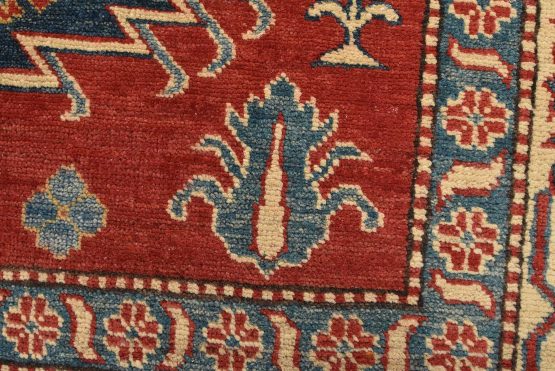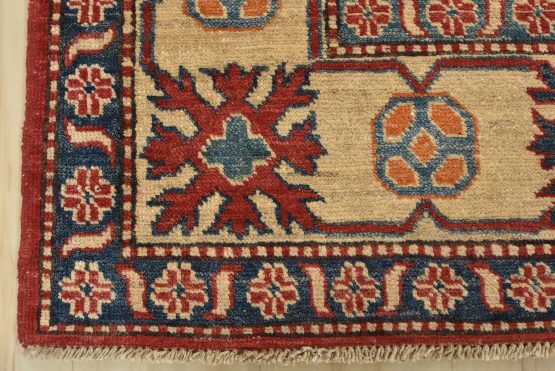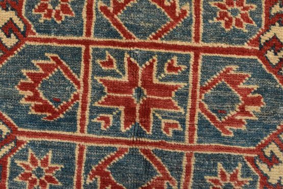 Original antique Kazak rugs from the Caucasus region inspire the creation of new Kazak rugs. These rugs are woven with fine wool using traditional Kazak patterns and finished with a low-cut pile to give them an authentic vintage look.
