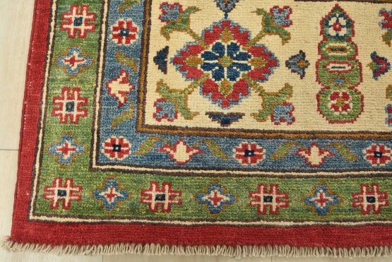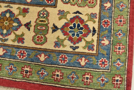 Original antique Kazak rugs from the Caucasus region inspire the creation of new Kazak rugs. These rugs are woven with fine wool using traditional Kazak patterns and finished with a low-cut pile to give them an authentic vintage look.