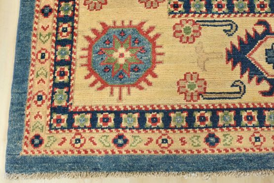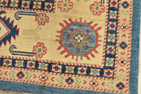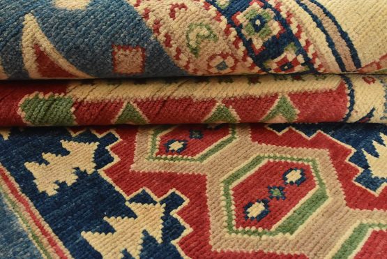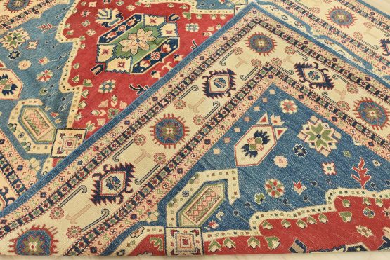 Original antique Kazak rugs from the Caucasus region inspire the creation of new Kazak rugs. These rugs are woven with fine wool using traditional Kazak patterns and finished with a low-cut pile to give them an authentic vintage look.