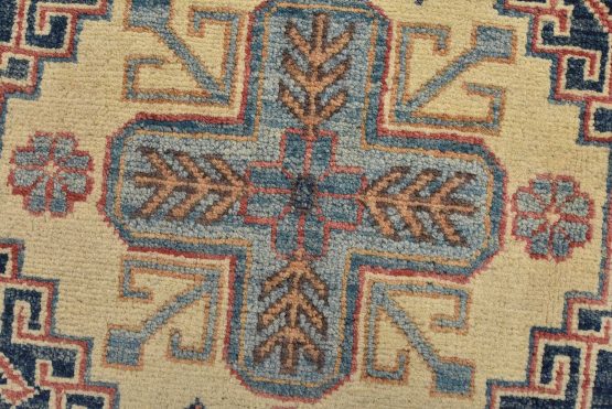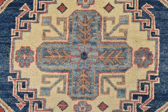 Original antique Kazak rugs from the Caucasus region inspire the creation of new Kazak rugs. These rugs are woven with fine wool using traditional Kazak patterns and finished with a low-cut pile to give them an authentic vintage look.