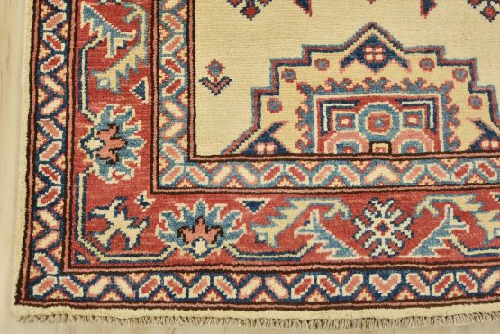 Original antique Kazak rugs from the Caucasus region inspire the creation of Kazak rugs. These rugs are woven with fine wool using traditional Kazak patterns and finished with a low-cut pile to give them an authentic vintage look.