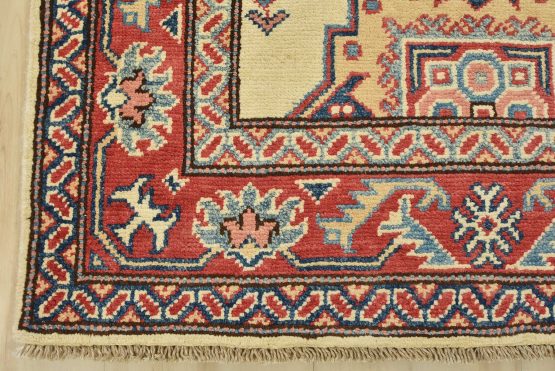 Original antique Kazak rugs from the Caucasus region inspire the creation of Kazak rugs. These rugs are woven with fine wool using traditional Kazak patterns and finished with a low-cut pile to give them an authentic vintage look.