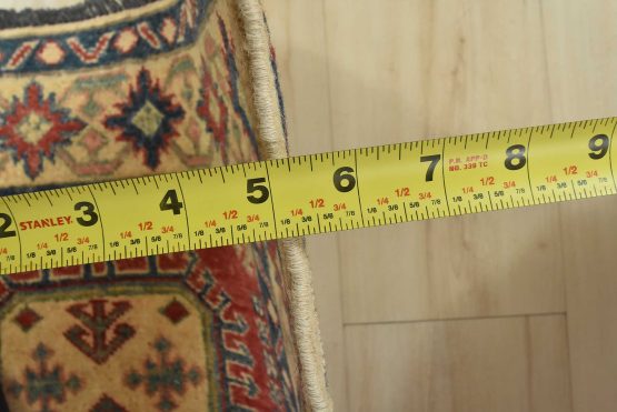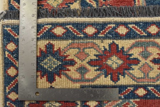Original antique Kazak rugs from the Caucasus region inspire the creation of new Kazak rugs. These rugs are woven with fine wool using traditional Kazak patterns and finished with a low-cut pile, giving them an authentic vintage look.