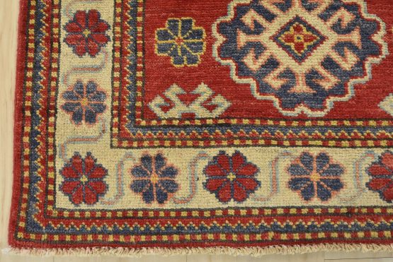 Original antique Kazak rugs from the Caucasus region inspire the creation of new Kazak rugs. These rugs are woven with fine wool using traditional Kazak patterns and finished with a low-cut pile, giving them an authentic vintage look.