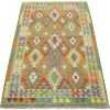 For this reason, most Kilims can be classed as “slit woven” textiles. Collectors love the slits, as they produce very sharp-etched designs emphasizing the geometry of the weave. The weft strands, which carry the visible design and color, are almost always wool, whereas the hidden warp strands can be wool or cotton. The warp strands are only visible at the ends, where they emerge as the fringe. Whether laying it over furniture or on the floor, a Kilim will add a splash of color to any room.