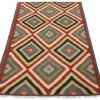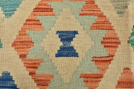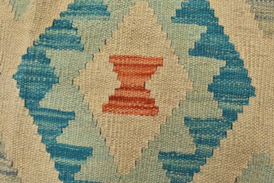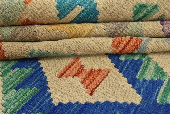 For this reason, most Kilims can be classed as “slit woven” textiles. Collectors love the slits, as they produce very sharp-etched designs emphasizing the geometry of the weave. The weft strands, which carry the visible design and color, are almost always wool, whereas the hidden warp strands can be wool or cotton. The warp strands are only visible at the ends, where they emerge as the fringe. Whether laying it over furniture or on the floor, a Kilim will add a splash of color to any room.