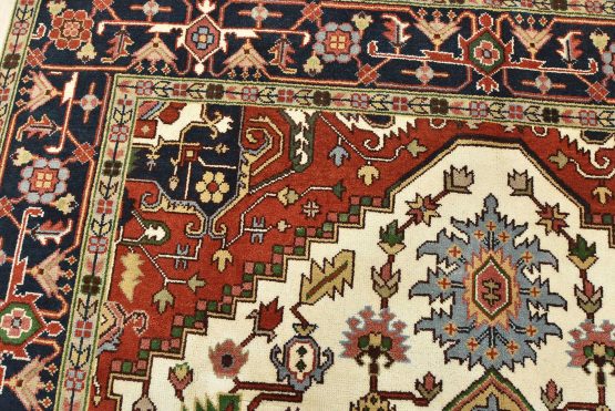 Original Heriz designs are revived in their traditional form. Woven with classic colors and patterns, these rugs capture a timeless look and feel of a style that has been around for generations. Whether in a traditional or country setting, these rugs would be a fine addition to any home.