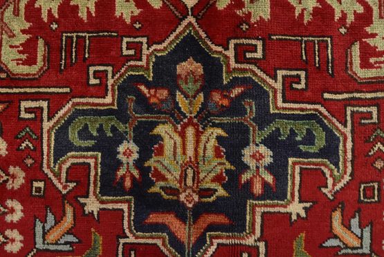 Heriz Rug 7’11” x 7’11” Red Wool Tribal Hand-Knotted Oriental Carpet