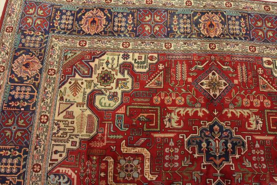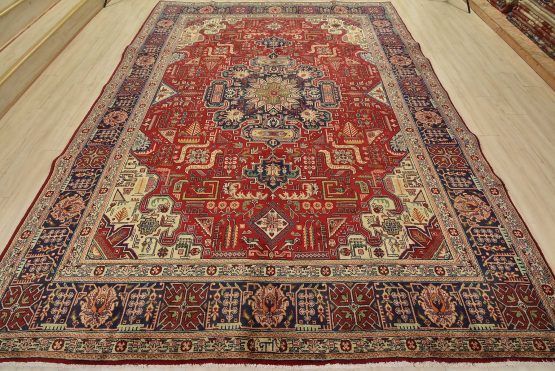 Tabriz Rug 9’11” x 12’11” Red Wool Semi-Antique Hand-Knotted Carpet