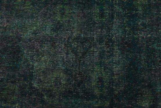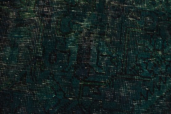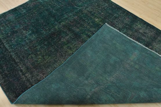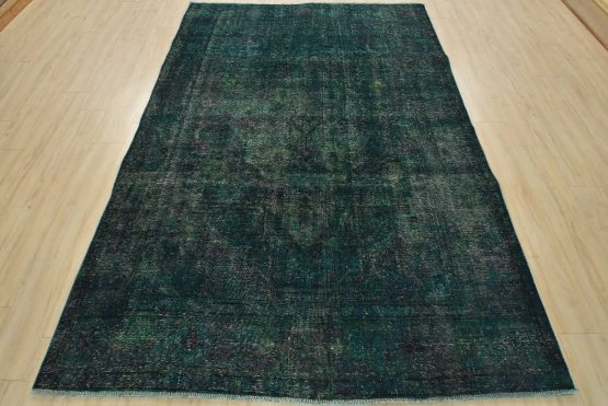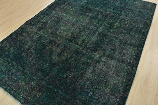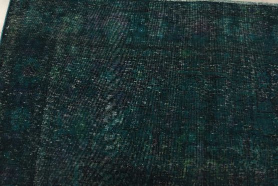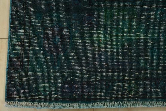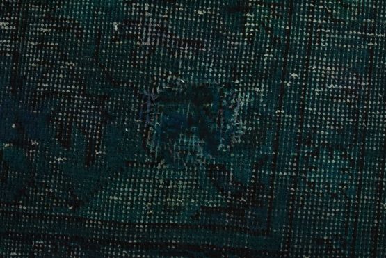 An authentic vintage traditional Overdyed Tabriz rug hand-knotted with an all-wool pile on a cotton foundation. This oriental rug features a muted central medallion surrounded by muted floral designs set against a blue background. It has a low wool pile, is worn and distressed, and has minor imperfections (see photos). However, it is in very good condition.
