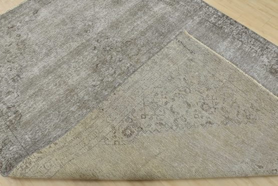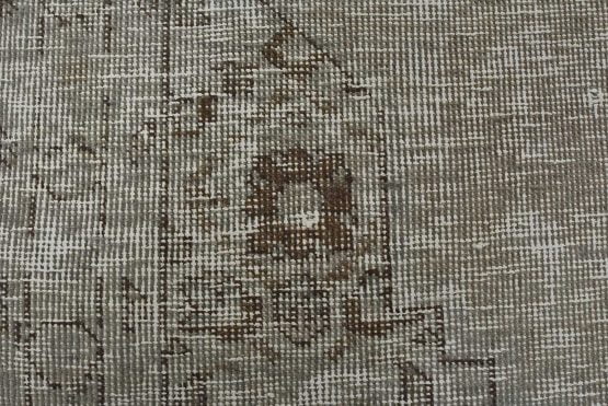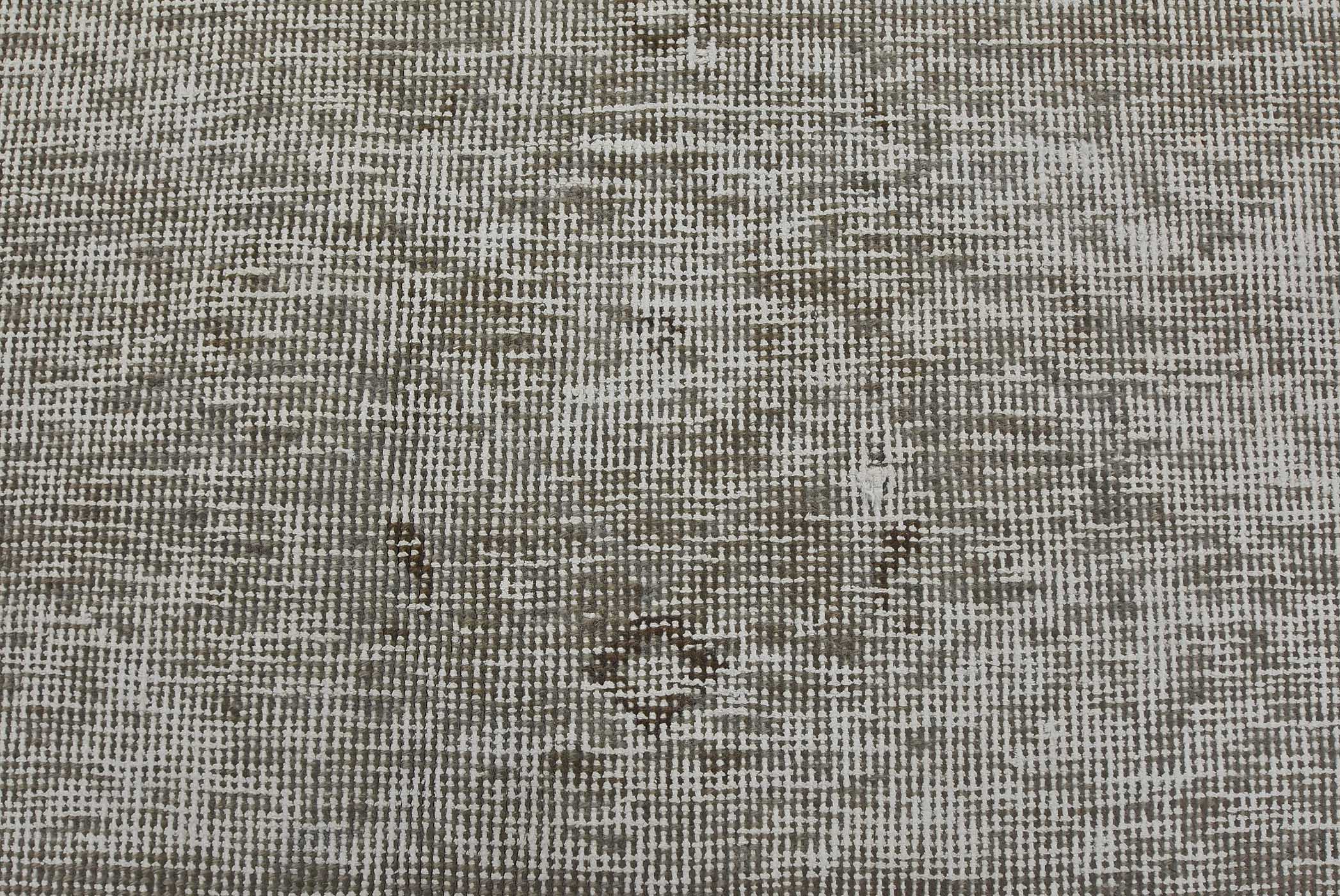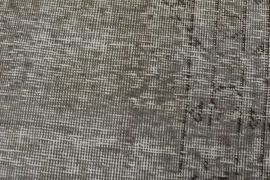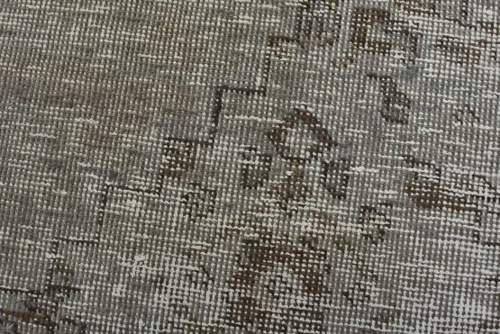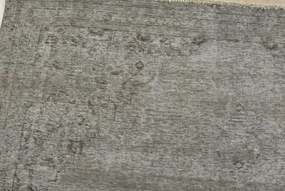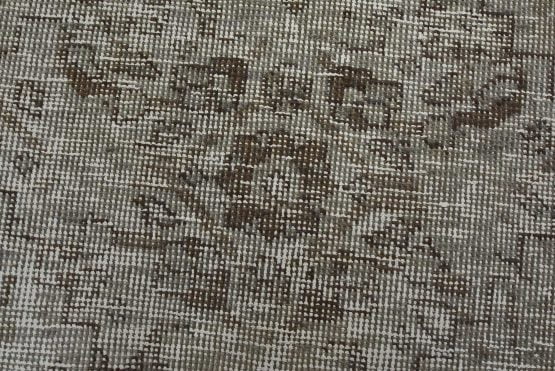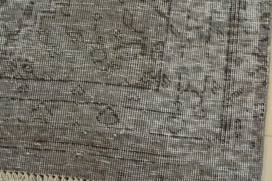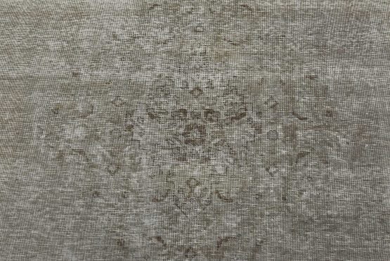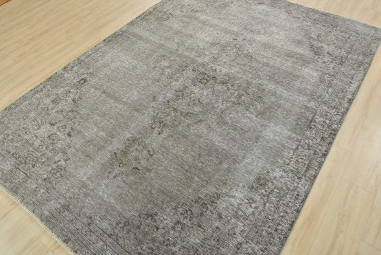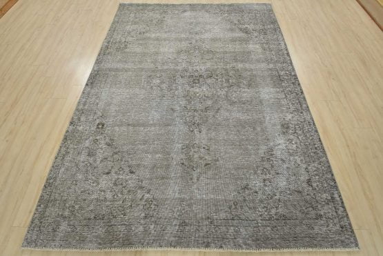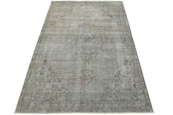 An authentic vintage traditional Overdyed Tabriz rug hand-knotted with an all-wool pile on a cotton foundation. This oriental rug features a muted central floral medallion set against a gray background. It has a low wool pile, is worn and distressed, and has minor imperfections (see photos). However, it is in very good condition.
