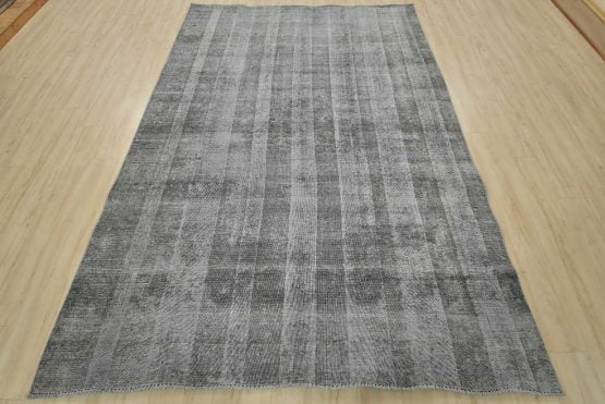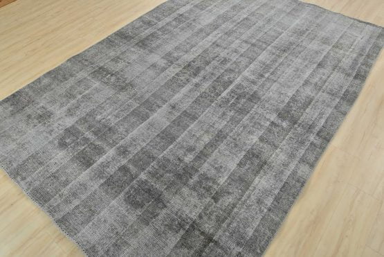 An authentic vintage Overdyed Tabriz rug hand-knotted with an all-wool pile on a cotton foundation. This oriental rug features a plain background with no visible design. It has a low wool pile, is worn and distressed, and has minor imperfections (see photos). However, it is in very good condition.