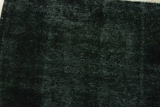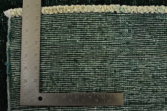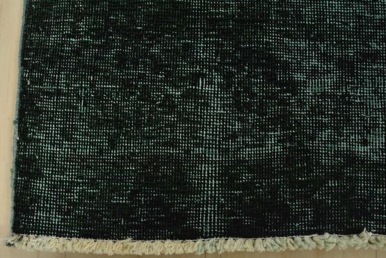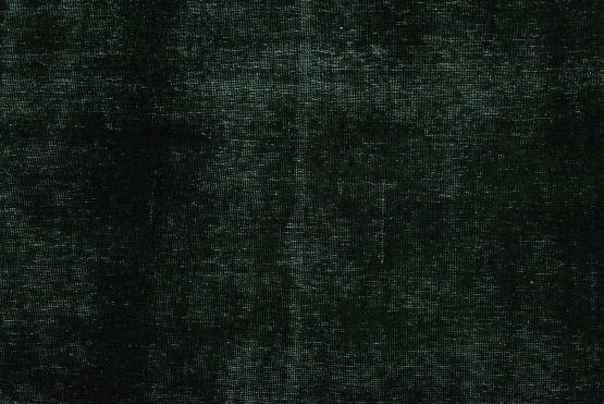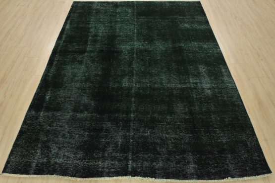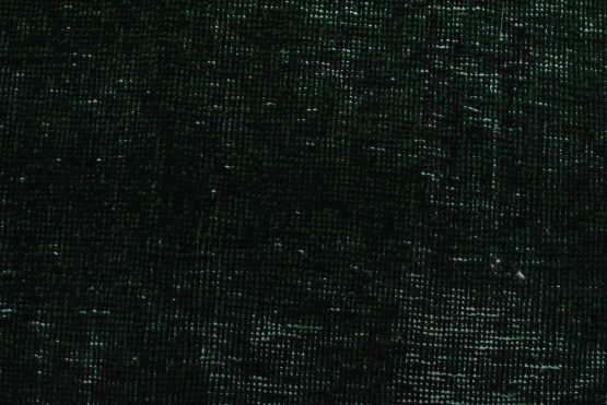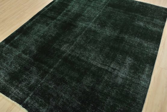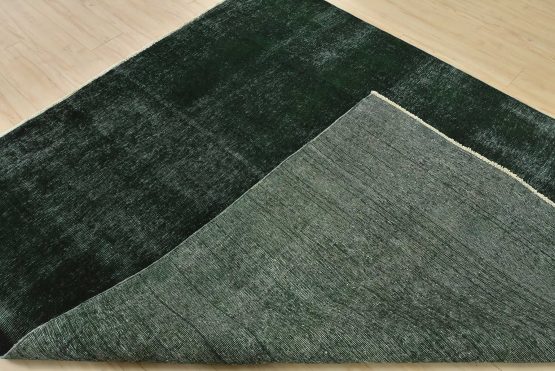 An authentic vintage Overdyed Tabriz rug hand-knotted with an all-wool pile on a cotton foundation. This oriental rug features a distressed green background with no visible patterns. It has a low wool pile, is worn and distressed, and has minor imperfections (see photos). However, it is in very good condition.