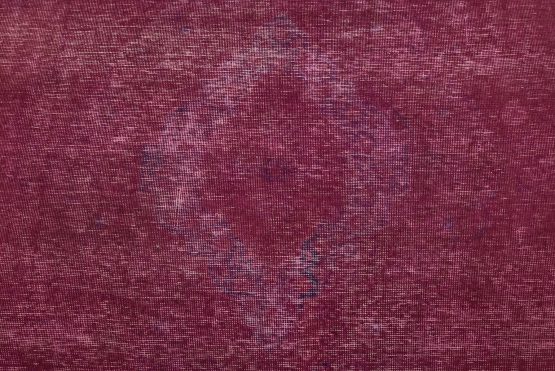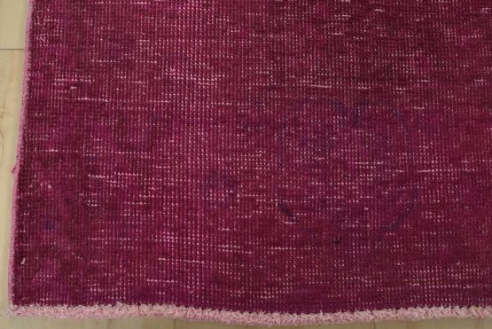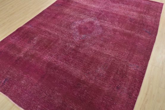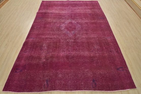An authentic vintage traditional Overdyed Tabriz rug hand-knotted with an all-wool pile on a cotton foundation. This oriental rug features a muted central medallion set against a pink background. It has a low wool pile, is worn and distressed, and has minor imperfections (see photos). However, it is in very good condition.