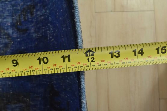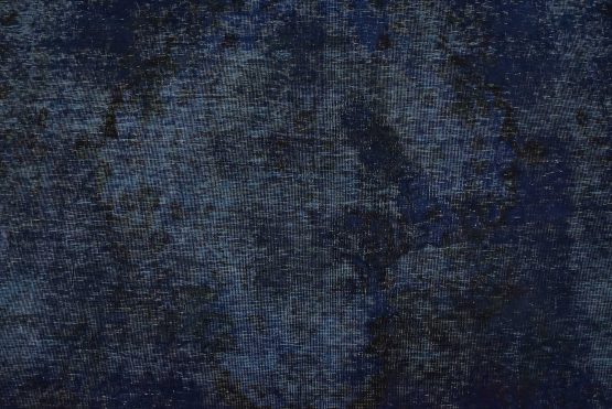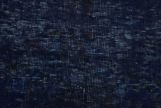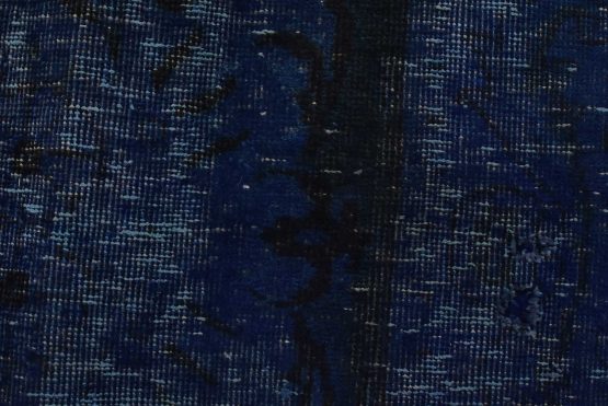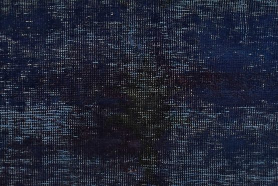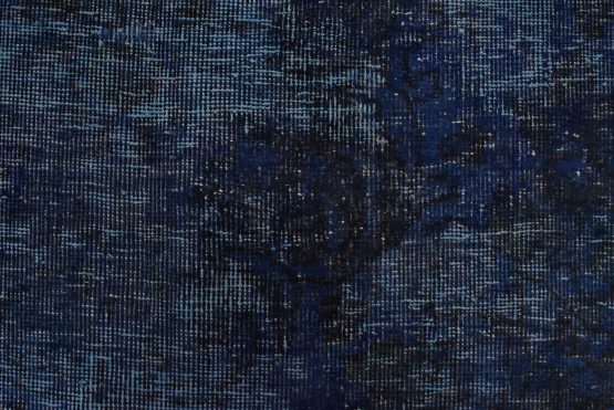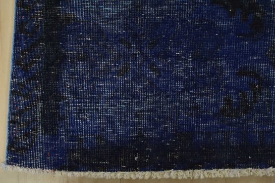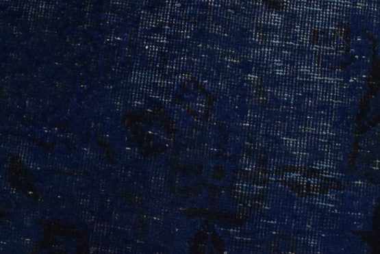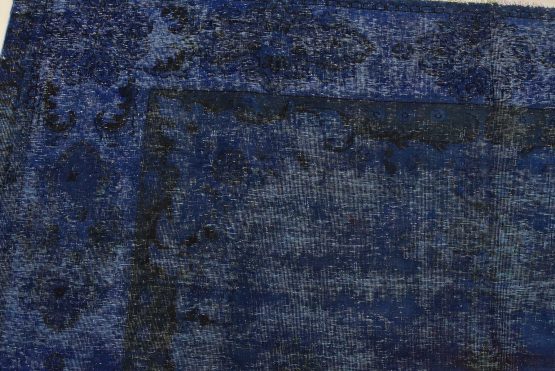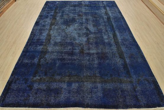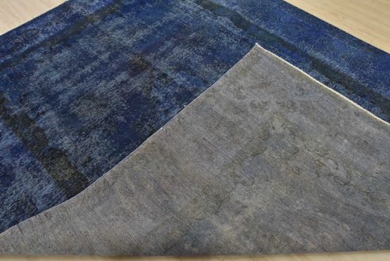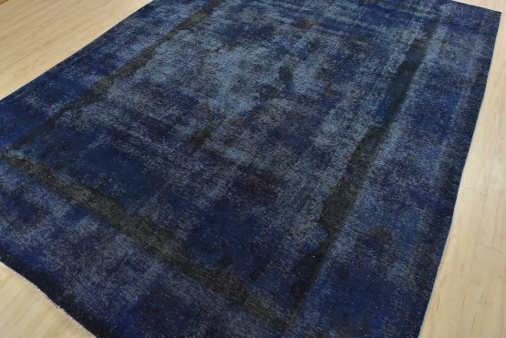 An authentic vintage traditional Overdyed Tabriz rug hand-knotted with an all-wool pile on a cotton foundation. This oriental rug features a muted central medallion surrounded by muted floral motifs set against a blue background. It has a low wool pile, is worn and distressed, and has minor imperfections (see photos). However, it is in very good condition.