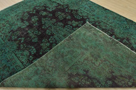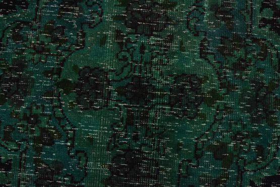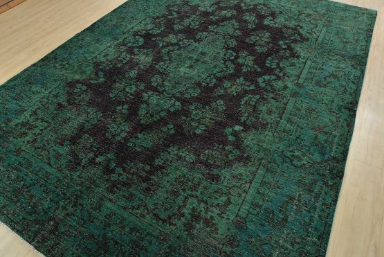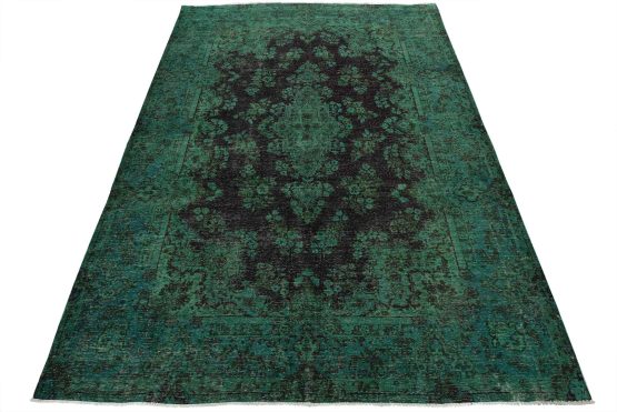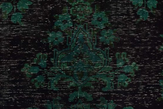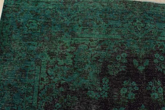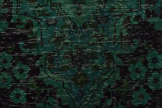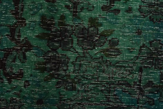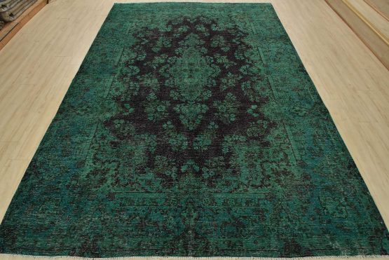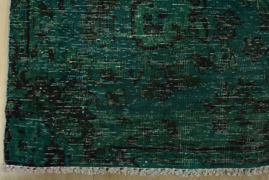 An authentic vintage traditional Overdyed Tabriz rug hand-knotted with an all-wool pile on a cotton foundation. This rug features a central medallion surrounded by floral designs. It has a low wool pile, is worn and distressed, and has minor imperfections (see photos). However, it is in very good condition.