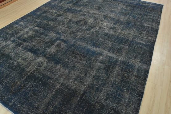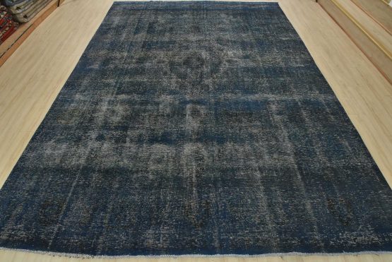 Tabriz Rug 9’11” x 12’6” Blue Wool Vintage Overdyed Hand-Knotted Oriental Carpet