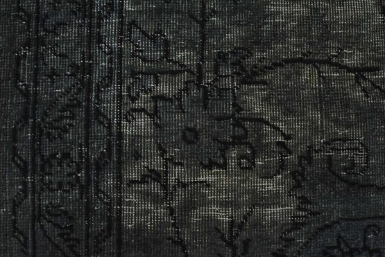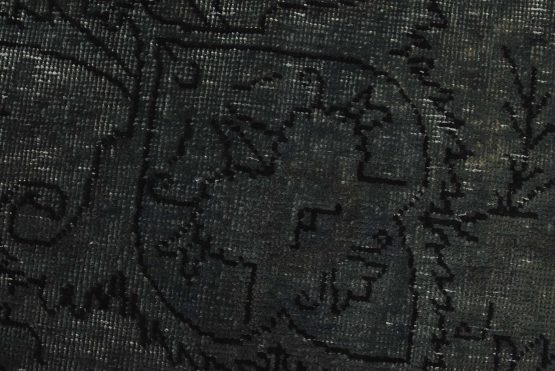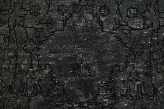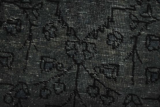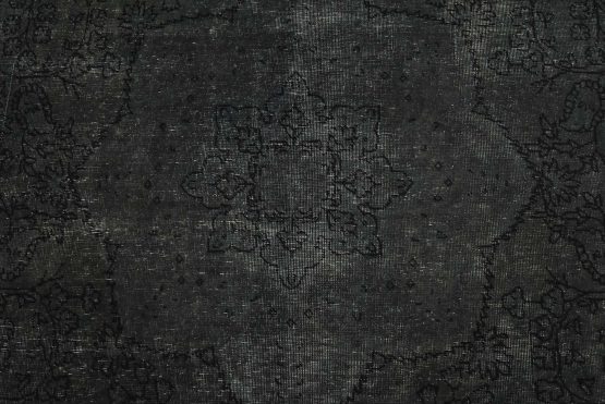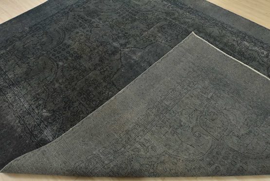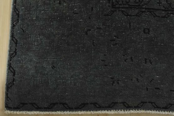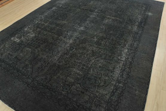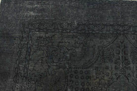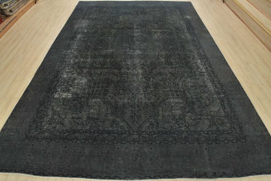 An authentic vintage traditional Overdyed Tabriz rug hand-knotted with an all-wool pile on a cotton foundation. This oriental rug features a muted central medallion surrounded by floral designs set against a gray background. It has a low wool pile, is worn and distressed, and has minor imperfections (see photos). However, it is in very good condition.