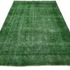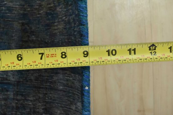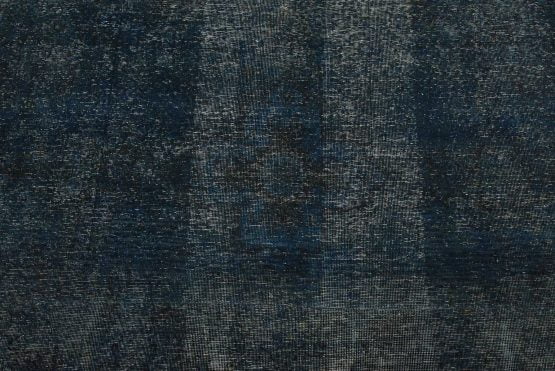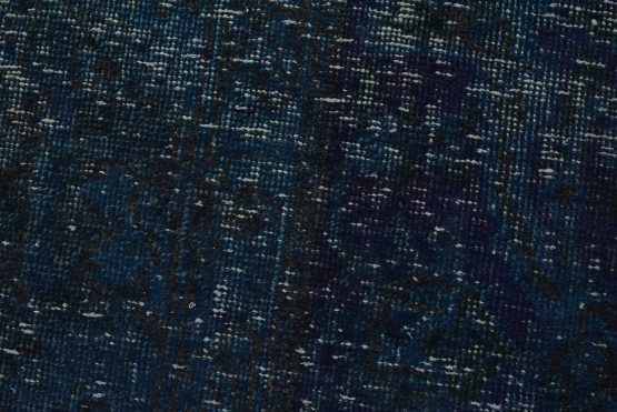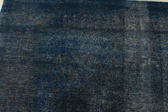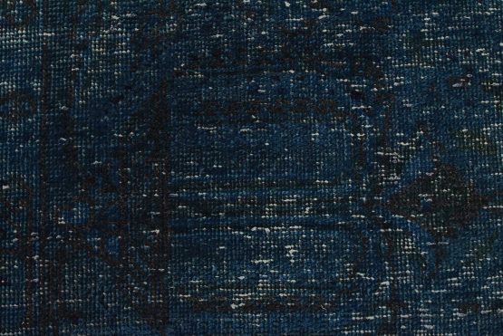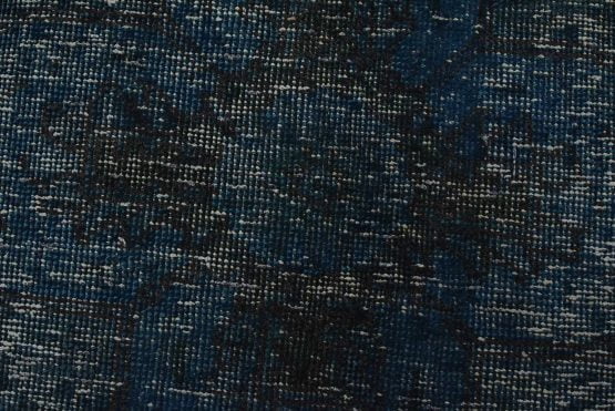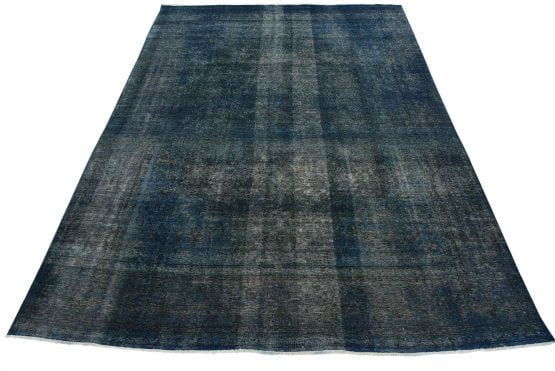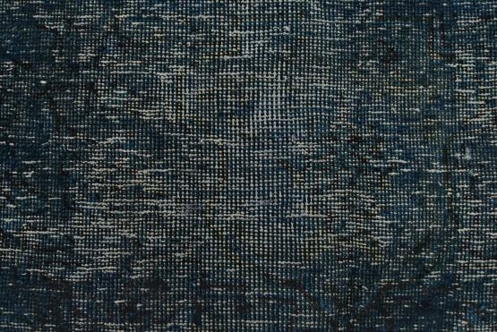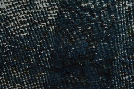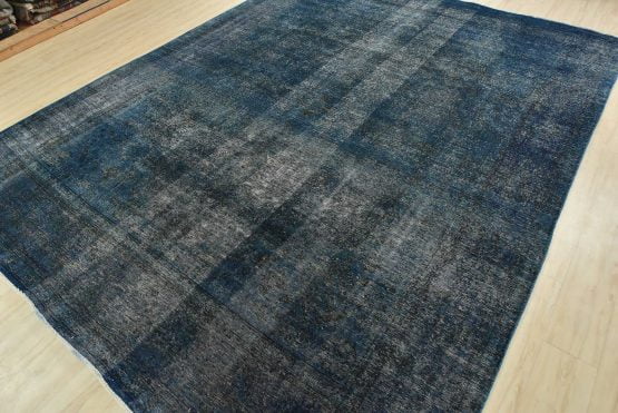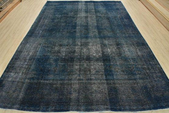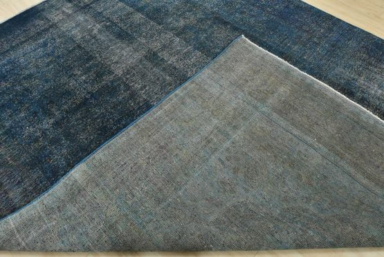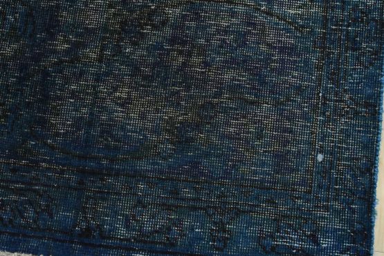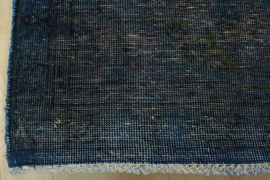 An authentic vintage traditional Overdyed Tabriz rug hand-knotted with an all-wool pile on a cotton foundation. This oriental rug features a muted central medallion surrounded by a muted floral design set against a blue background. It has a low wool pile, is worn and distressed, and has minor imperfections (see photos). However, it is in very good condition.