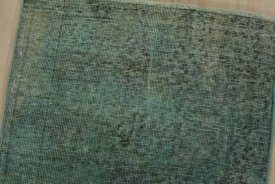 An authentic vintage Overdyed Tabriz rug hand-knotted with an all-wool pile on a cotton foundation. It has a low wool pile, is worn and distressed, and has minor imperfections (see photos). However, it is in very good condition.