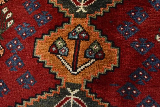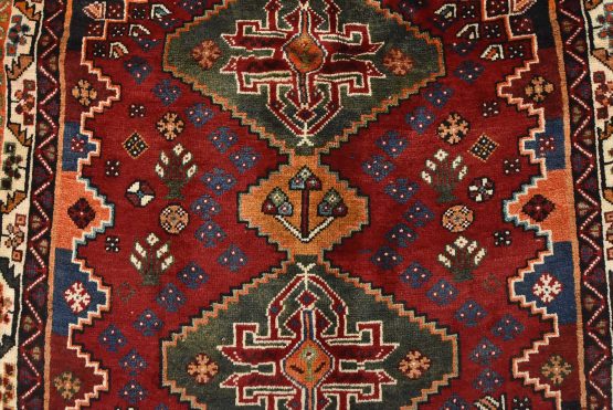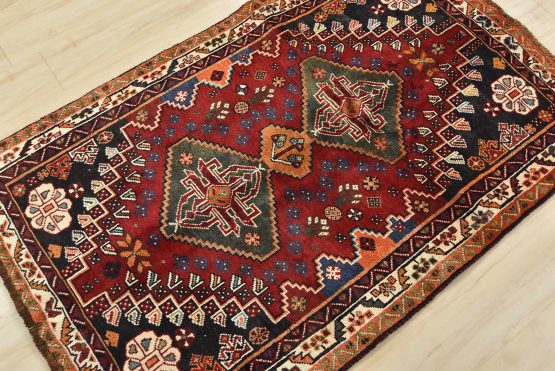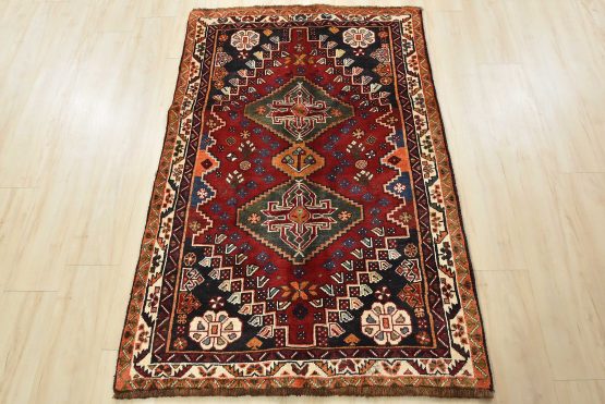 Qashqai Rug 3’6” x 5’5” Red Wool Vintage Tribal Hand-Knotted Oriental Carpet