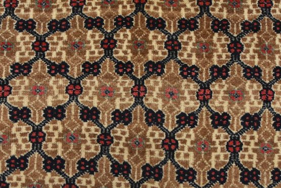 An authentic vintage tribal Kolyai rug hand-knotted with fine wool and natural dyes. This nomadic oriental rug features an all-over geometric pattern set against a brown background. The wool pile shows some minor wear; please refer to the photos. Otherwise, the rug is in very good condition.
