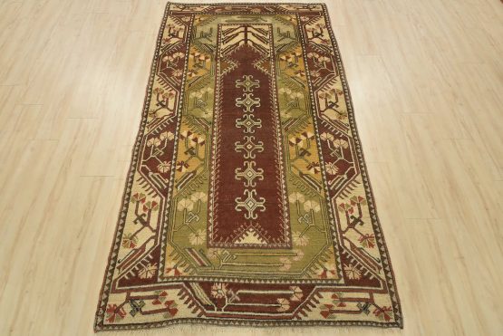 Milas Rug 4’3” x 7’6” Brown Wool Semi-Antique Tribal Hand-Knotted Carpet