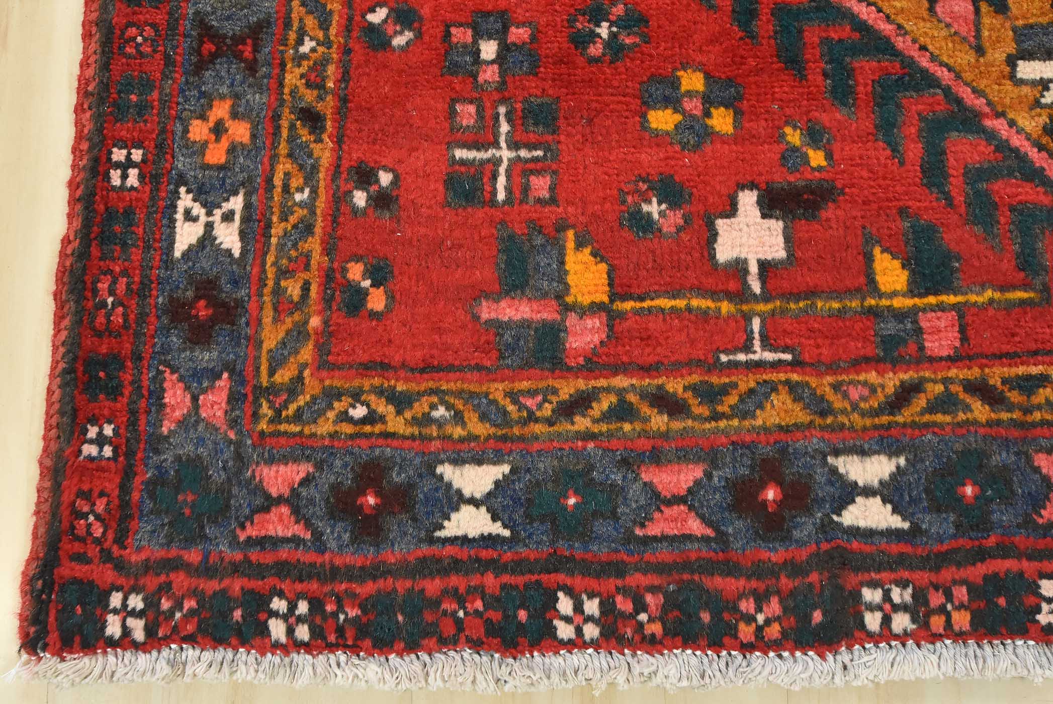 Karajeh Runner 3’7” x 10’5” Red Wool Semi-Antique Tribal Hand-Knotted Rug