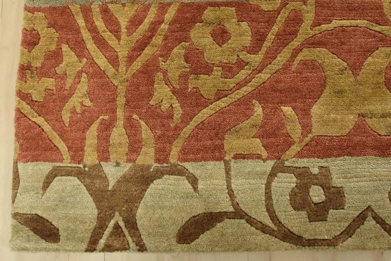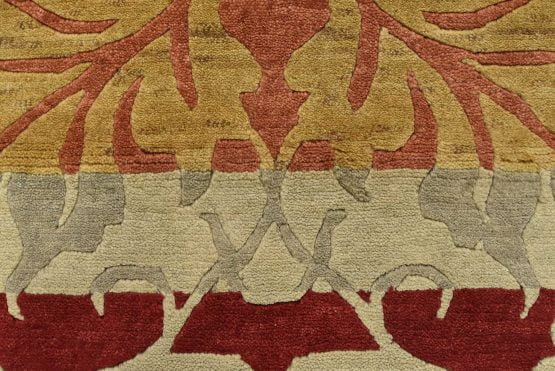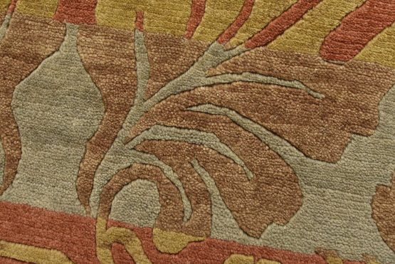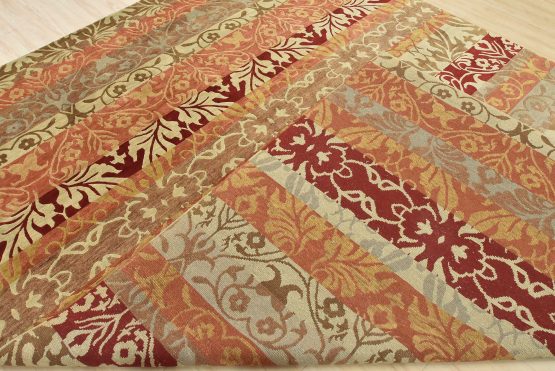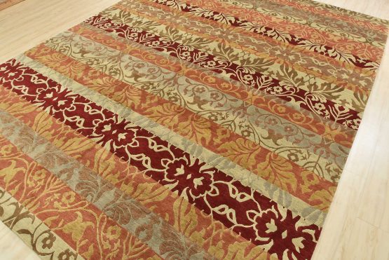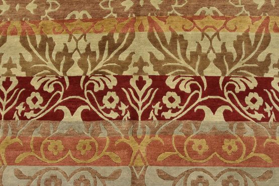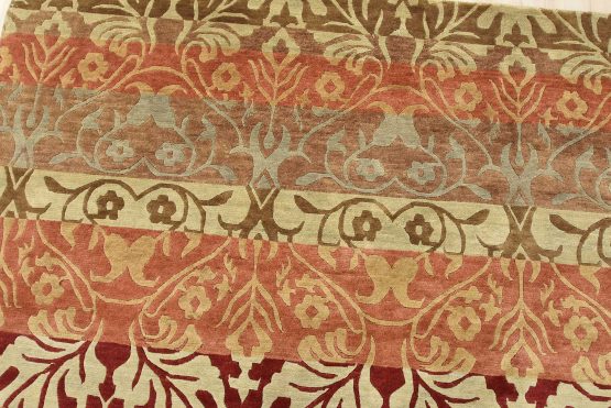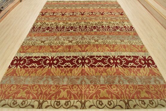 A modern William Morris rug hand-knotted with an all-wool pile on a cotton foundation. This oriental rug features an all-over botanical design with horizontal stripes in multiple colors. It is new and in excellent condition.