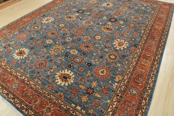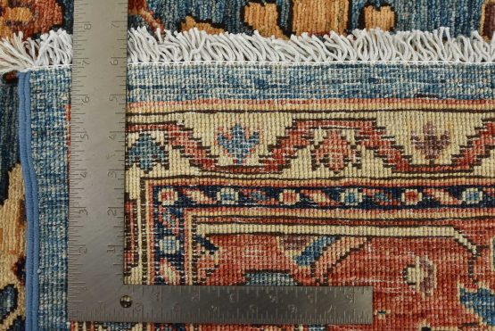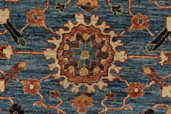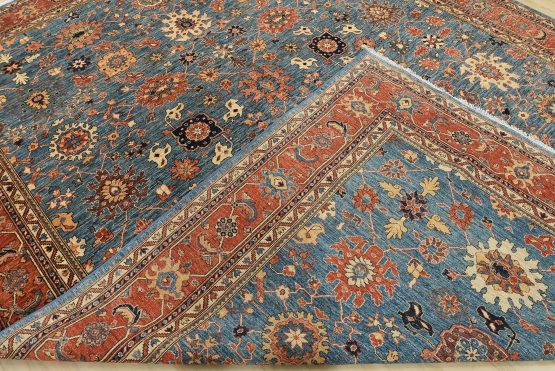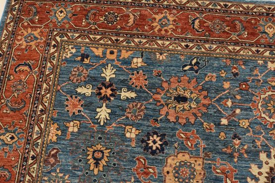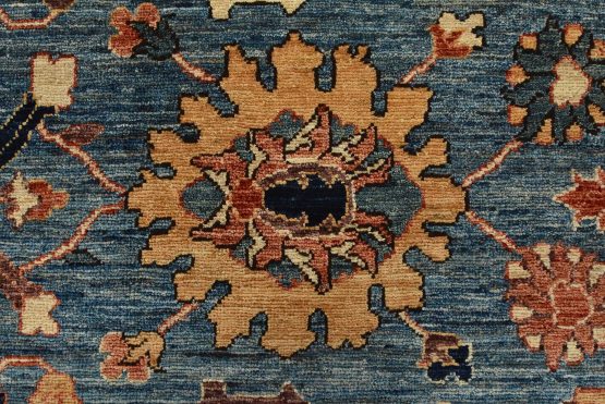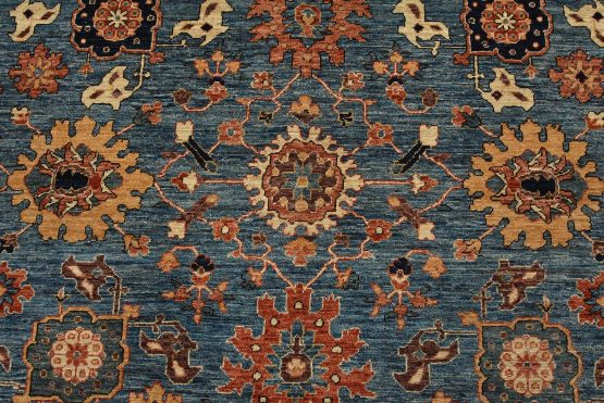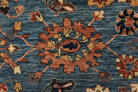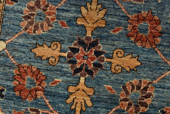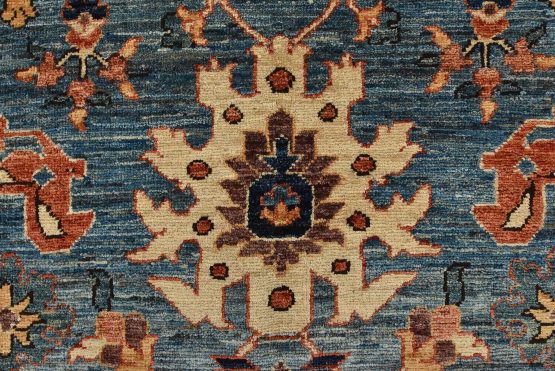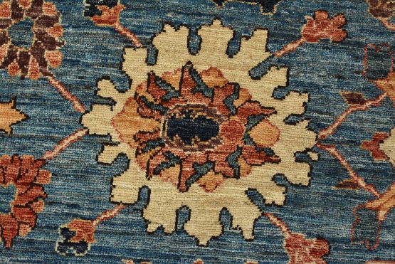 A traditional Ziegler rug hand-knotted with an all-wool pile on a cotton foundation. This finely woven oriental rug features an all-over botanical design set against a blue background. It is new and in excellent condition.