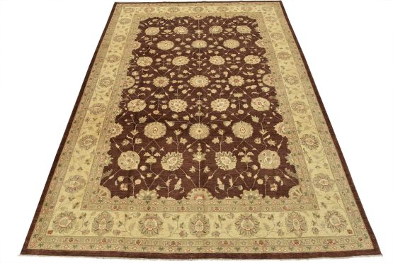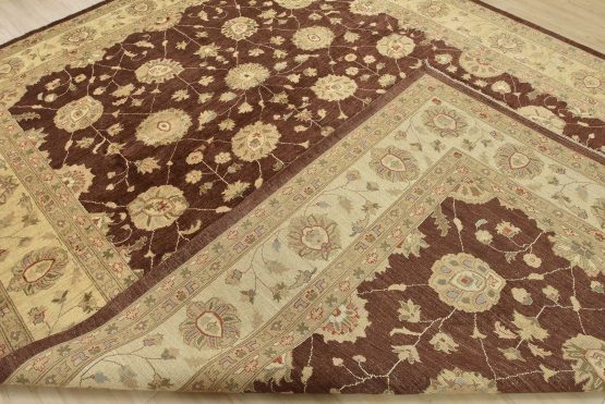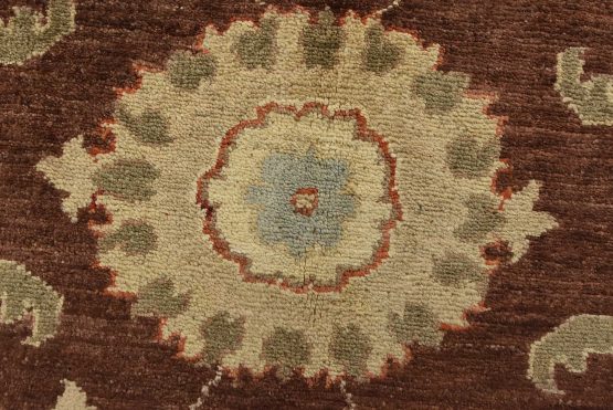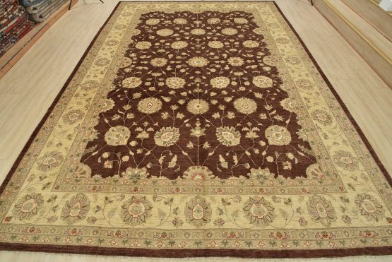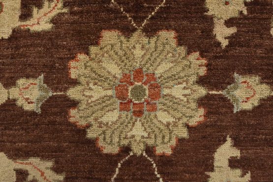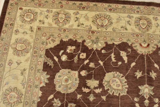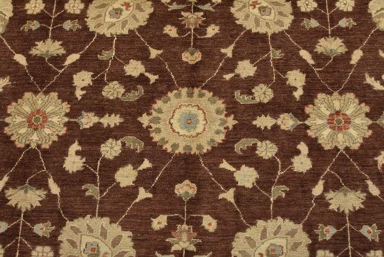 A traditional Ziegler rug hand-knotted with an all-wool pile on a cotton foundation. This oriental rug features an all-over floral design set against a brown background. It is new and in excellent condition.