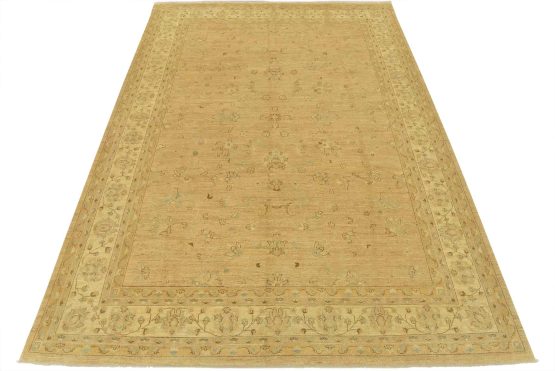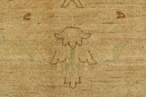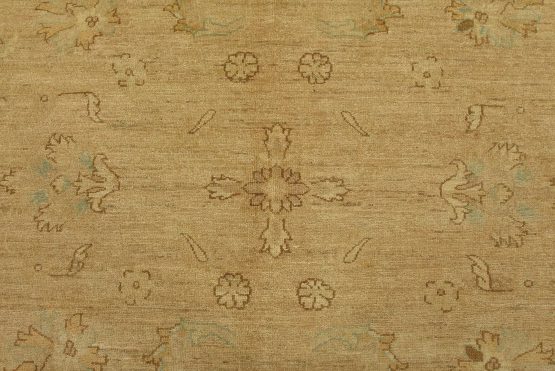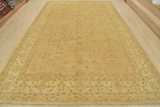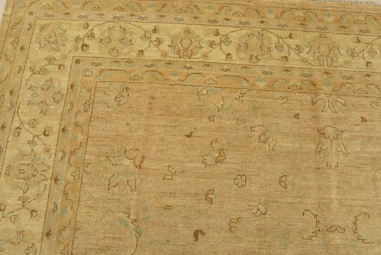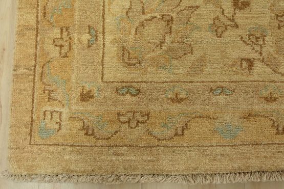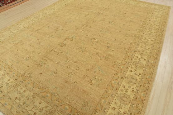 A traditional Ziegler rug hand-knotted with an all-wool pile on a cotton foundation. This oriental rug features a subtle all-over floral design set against a beige background. It is new and in excellent condition.