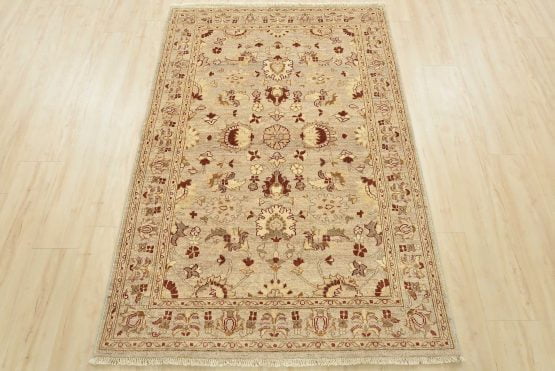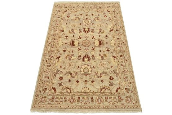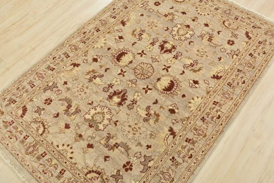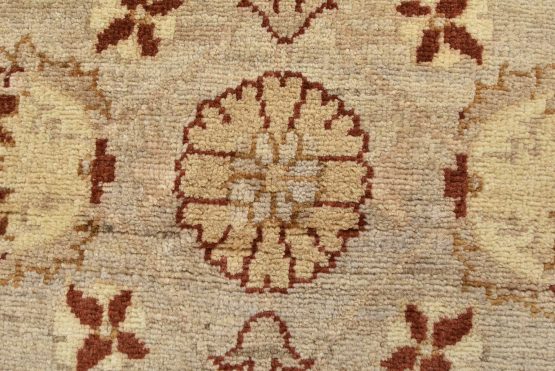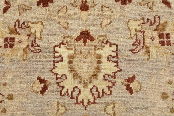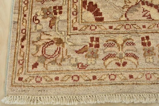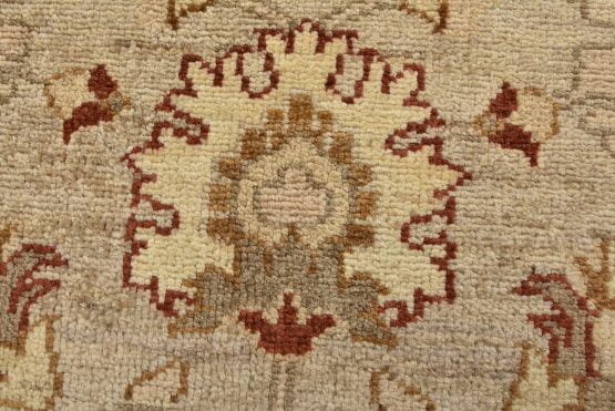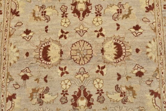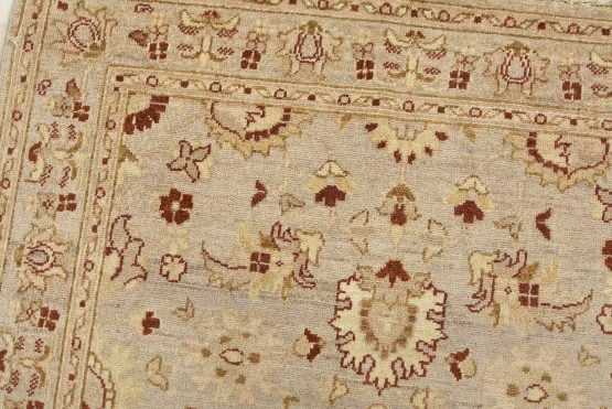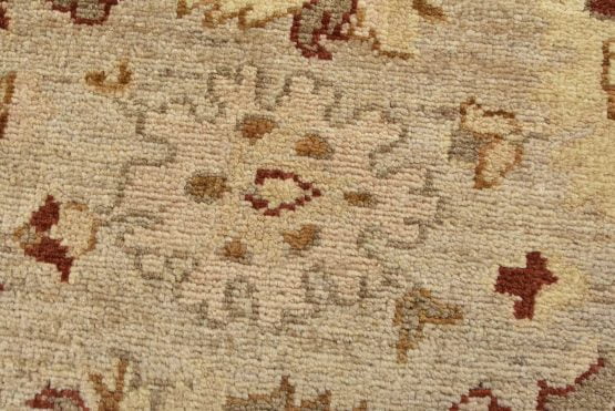 A traditional Ziegler rug hand-knotted with an all-wool pile on a cotton foundation. This oriental rug features an all-over botanical design set against a beige background. It is new and in excellent condition.