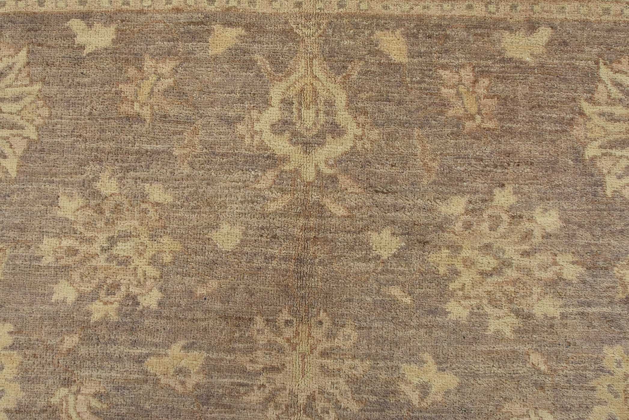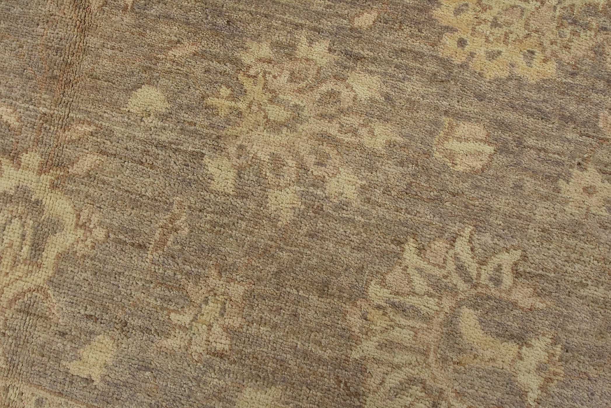 A traditional Ziegler rug hand-knotted with fine wool on a cotton foundation. this rug features an all-over subtle botanical design set against a lilac background. It is new and in excellent condition.