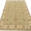 A traditional Ziegler rug hand-knotted with an all-wool pile on a cotton foundation. This oriental rug features a subtle all-over floral design set against a light green background. It is new and in excellent condition.