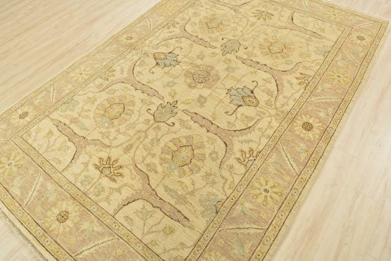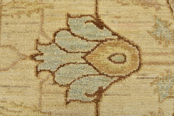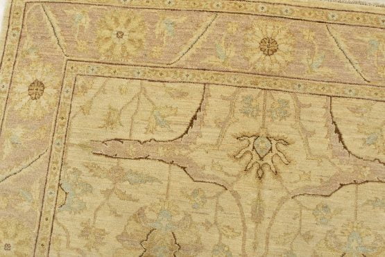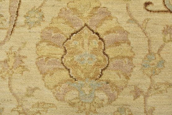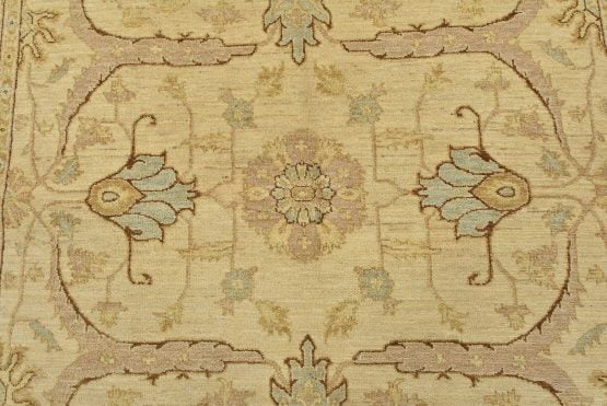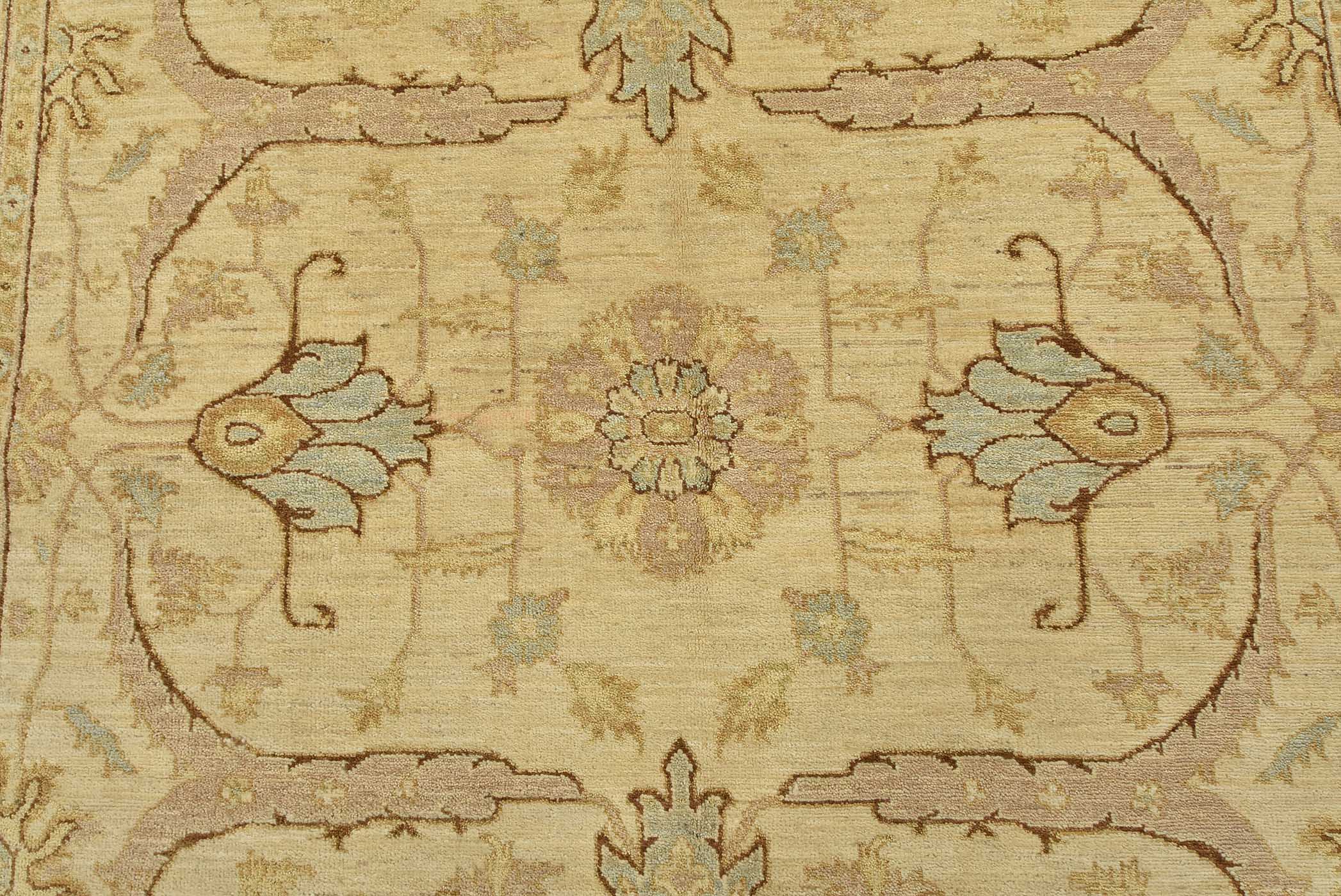 A modern traditional Ziegler rug hand-knotted with an all-wool pile on a cotton foundation. This oriental rug features a subtle all-over botanical design set against a beige background. It is new and in excellent condition.