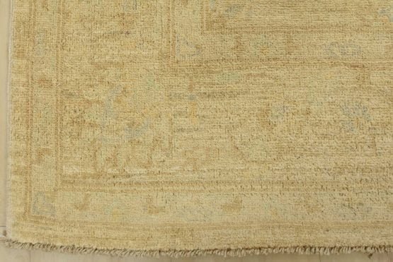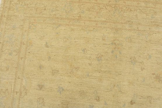 A traditional Ziegler rug hand-knotted with an all-wool pile on a cotton foundation. This oriental rug features a muted all-over floral design set against a beige background. It is new and in excellent condition.