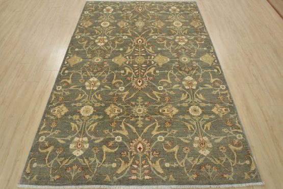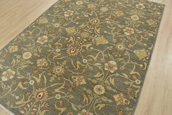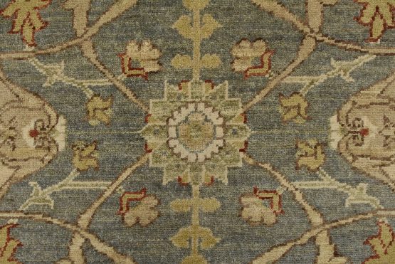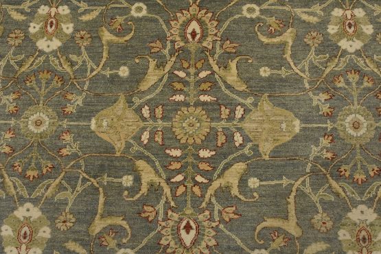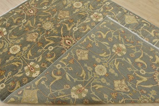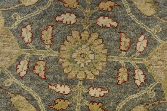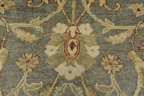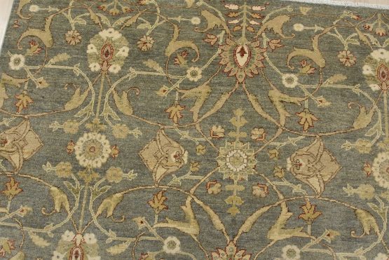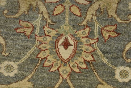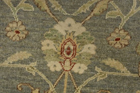 A traditional Ziegler rug hand-knotted with an all-wool pile on a cotton foundation. This oriental rug features an all-over floral design set against a gray background. It is new and in excellent condition.