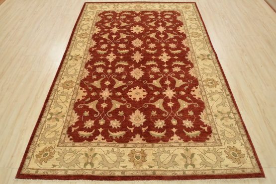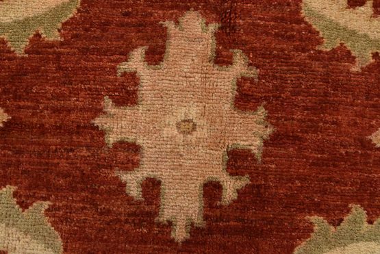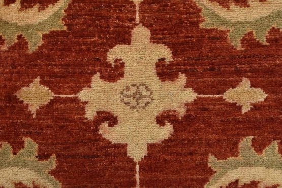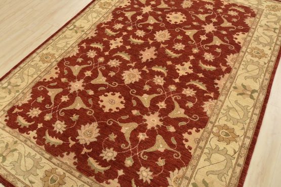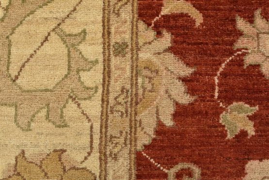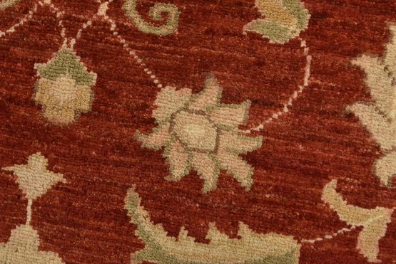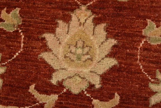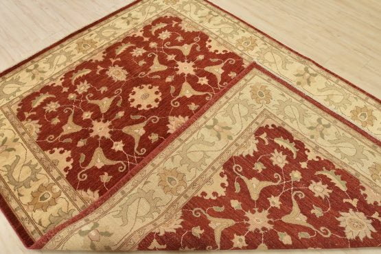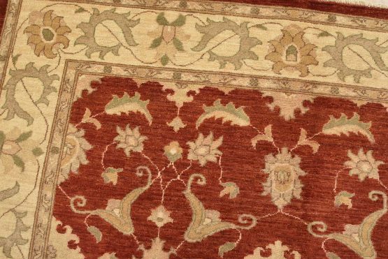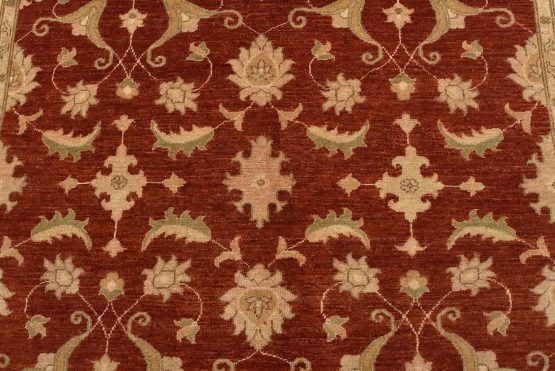 A traditional Ziegler rug hand-knotted with an all-wool pile on a cotton foundation. This oriental rug features an all-over floral design set against a red background. It is new and in excellent condition.
