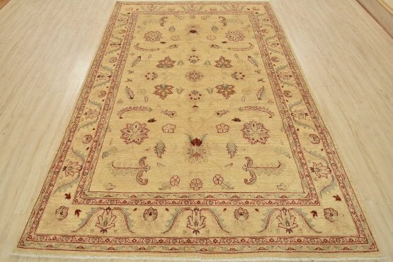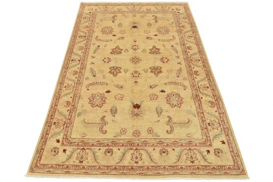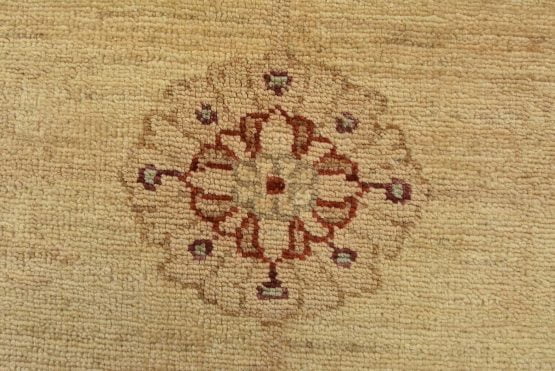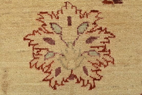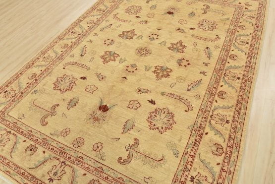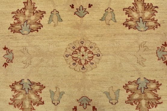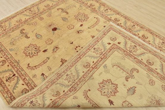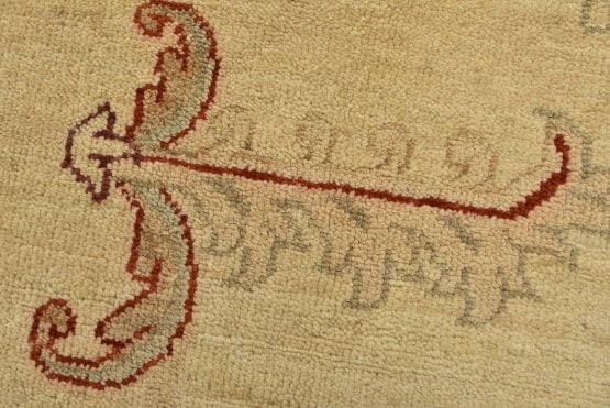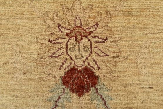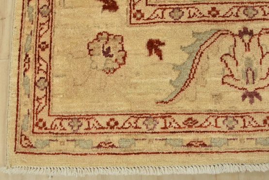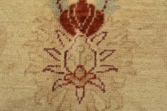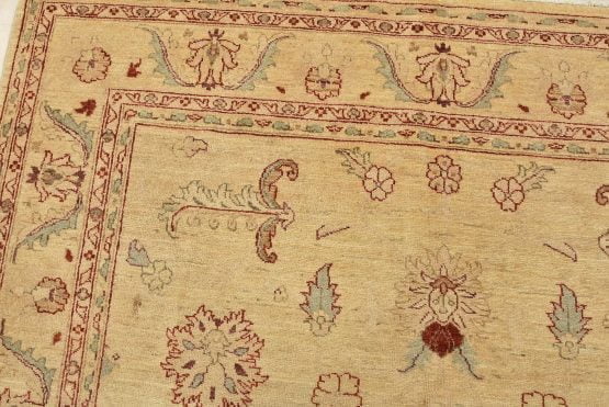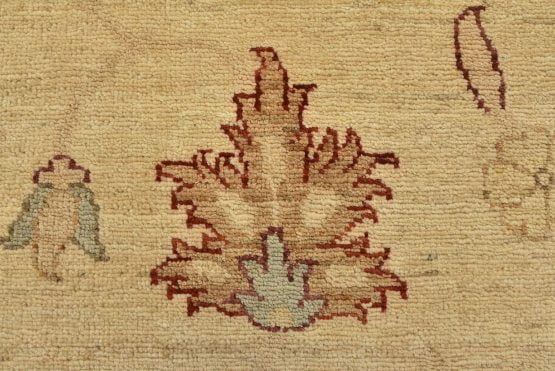 A traditional Ziegler rug hand-knotted with an all-wool pile on a cotton foundation. This oriental rug features a subtle all-over botanical design set against a beige background. It is new and in excellent condition.