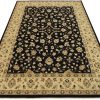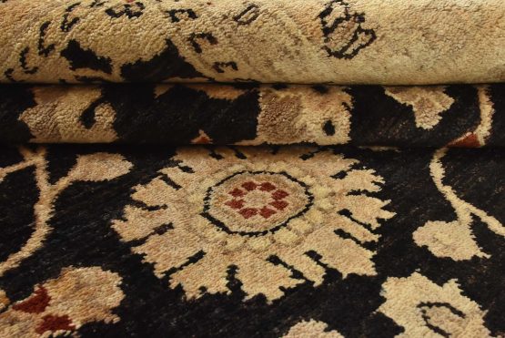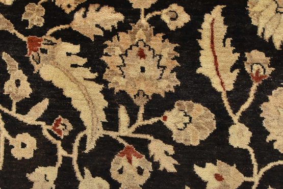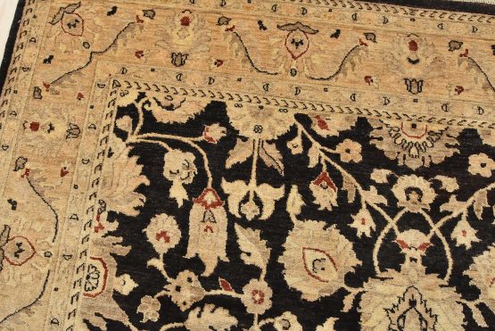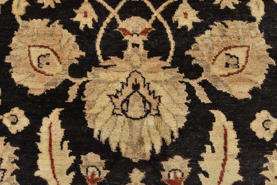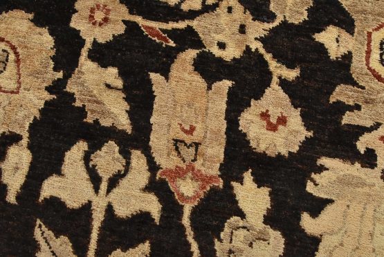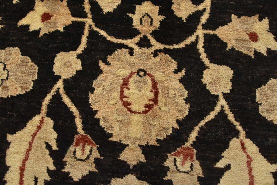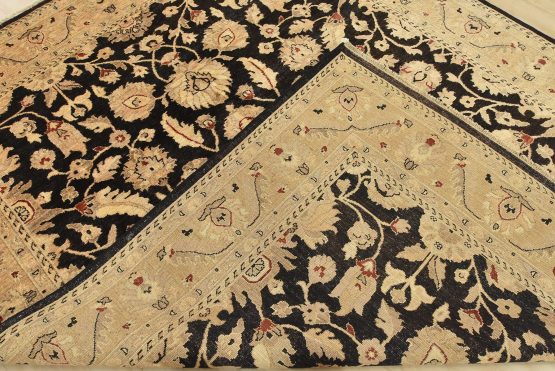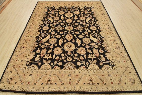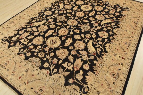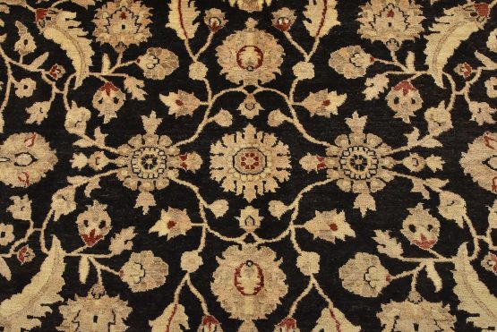 A traditional Ziegler rug hand-knotted with an all-wool pile on a cotton foundation. This oriental rug features an all-over floral design set against a black background. It is new and in excellent condition.