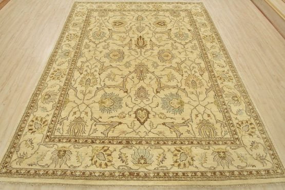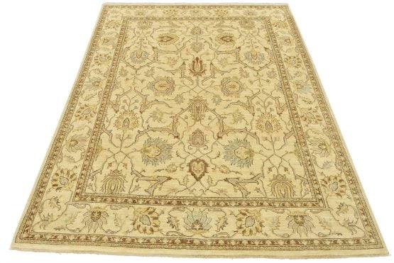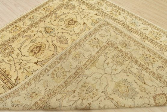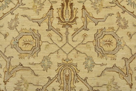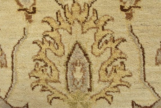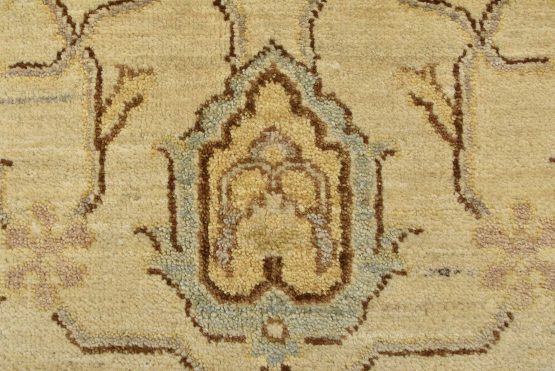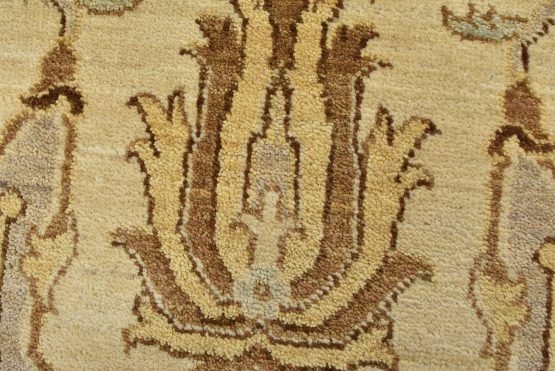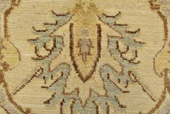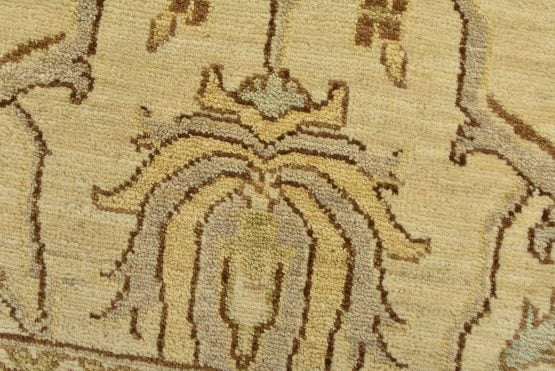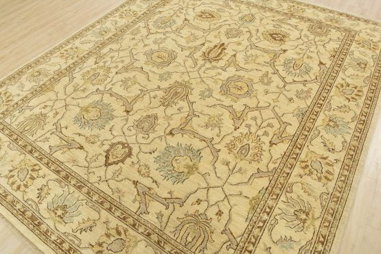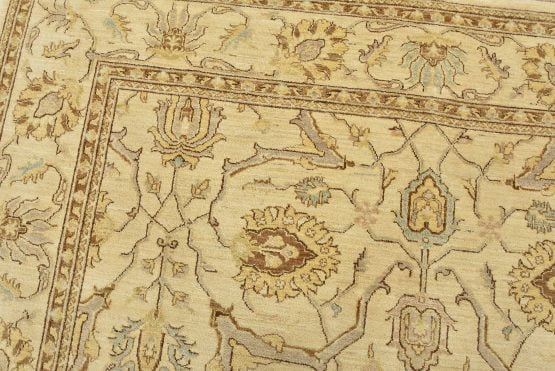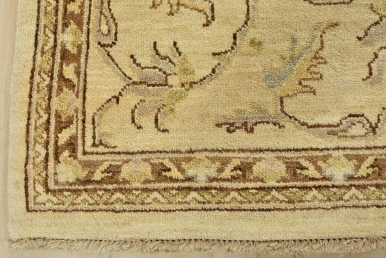 A traditional Ziegler rug hand-knotted with an all-wool pile on a cotton foundation. This oriental rug features an all-over botanical design set against a beige background. It is new and in excellent condition.
