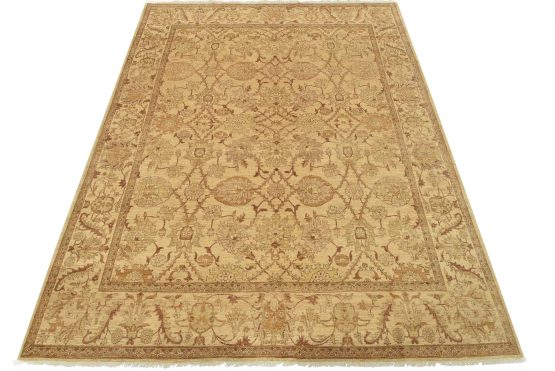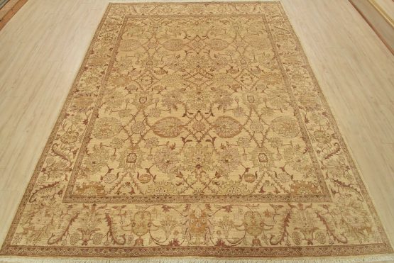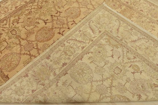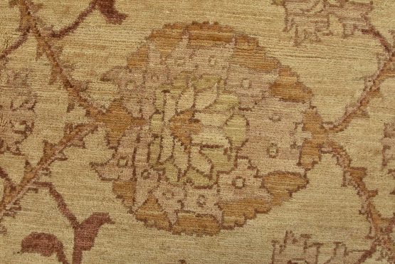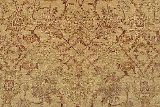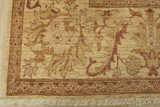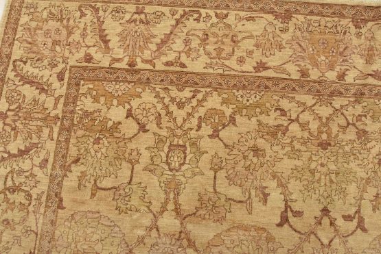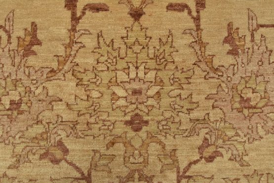 A traditional Ziegler rug hand-knotted with an all-wool pile on a cotton foundation. This oriental rug features a subtle botanical design set against a beige background. It is new and in excellent condition.