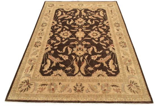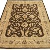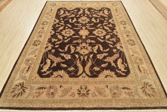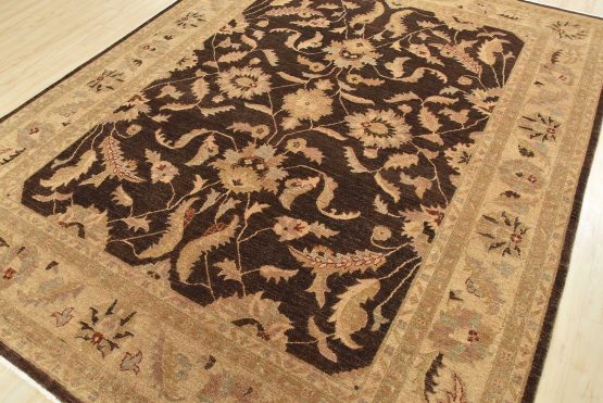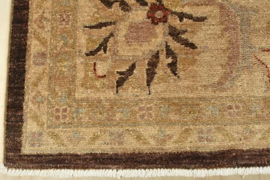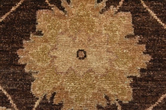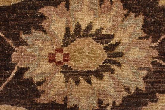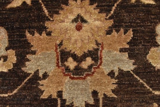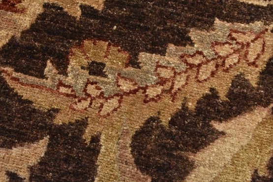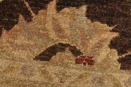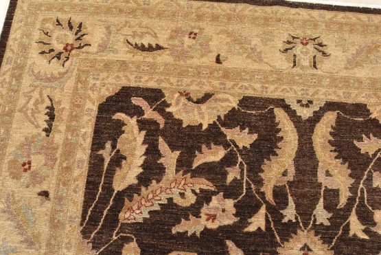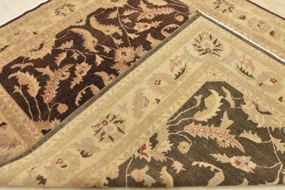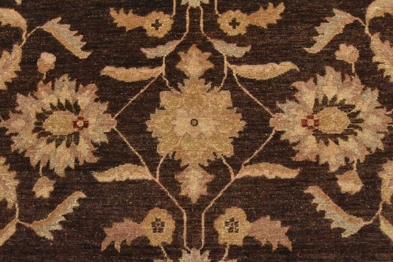 A traditional Ziegler rug hand-knotted with an all-wool pile on a cotton foundation. This oriental rug features an all-over botanical design set against a brown background. It is new and in excellent condition.