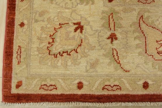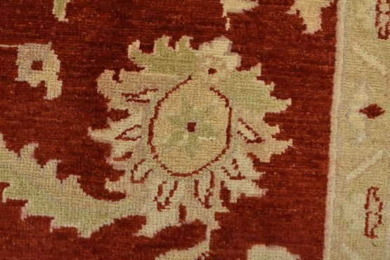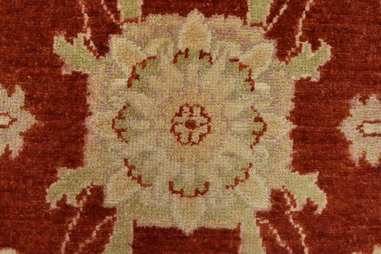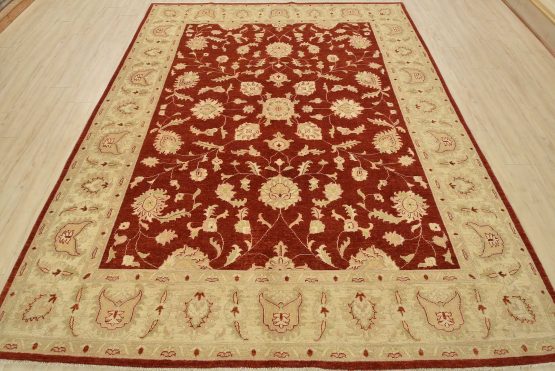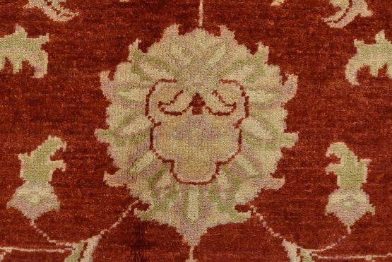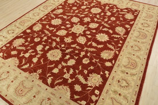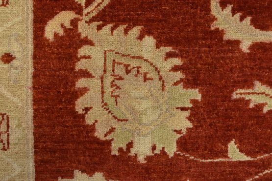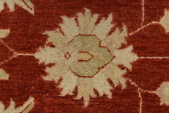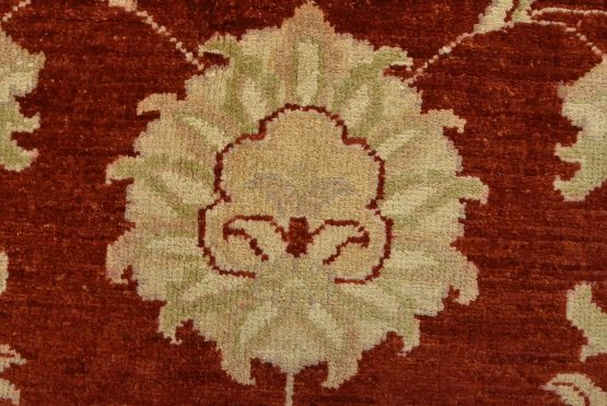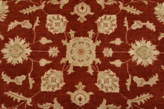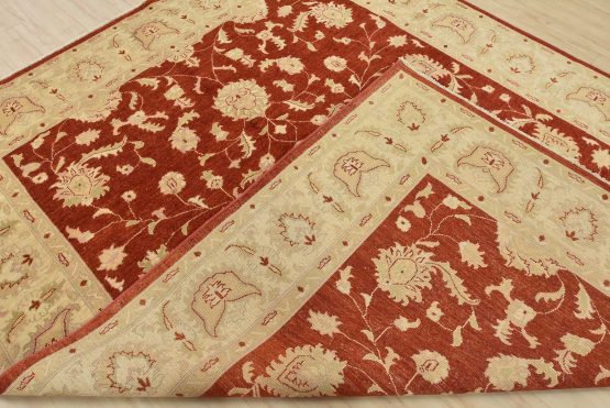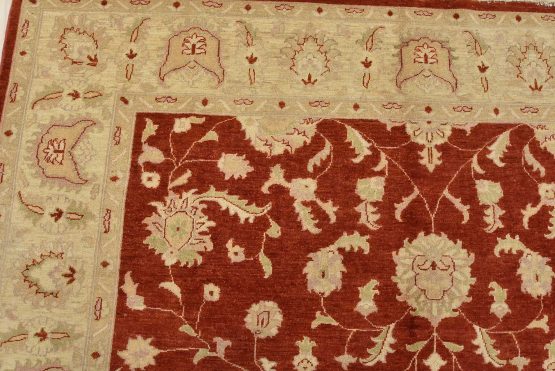 A traditional Ziegler rug hand-knotted with an all-wool pile on a cotton foundation. This oriental rug features an all-over floral design set against a red background. It is new and in excellent condition.