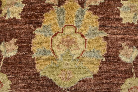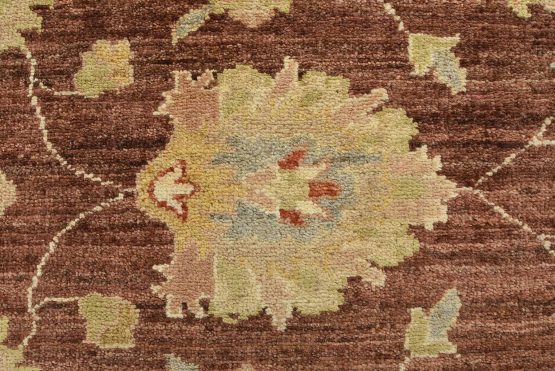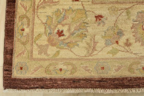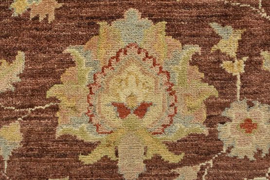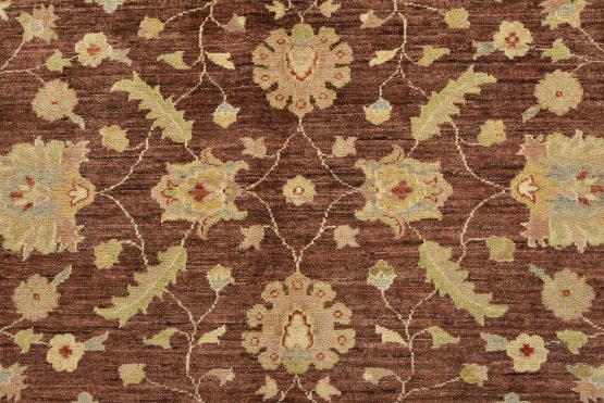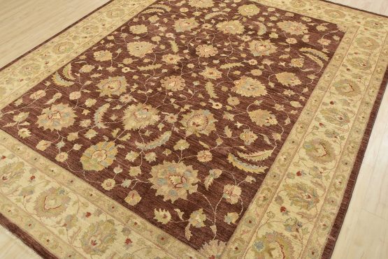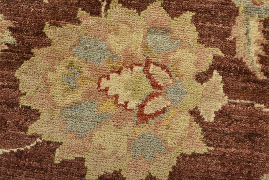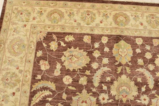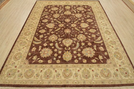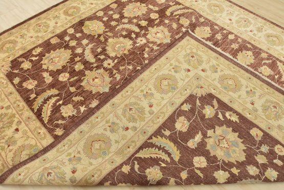 A traditional Ziegler rug hand-knotted with an all-wool pile on a cotton foundation. This oriental rug features an all-over floral design set against a brown background. It is new and in excellent condition.