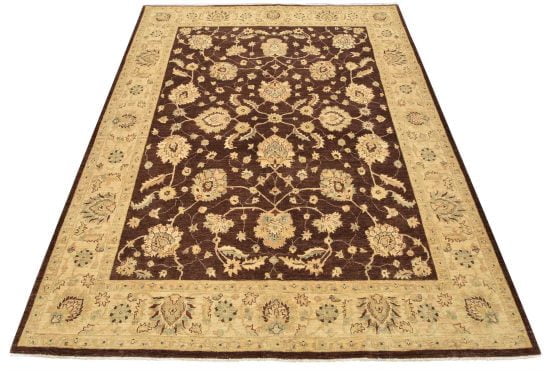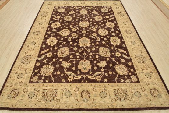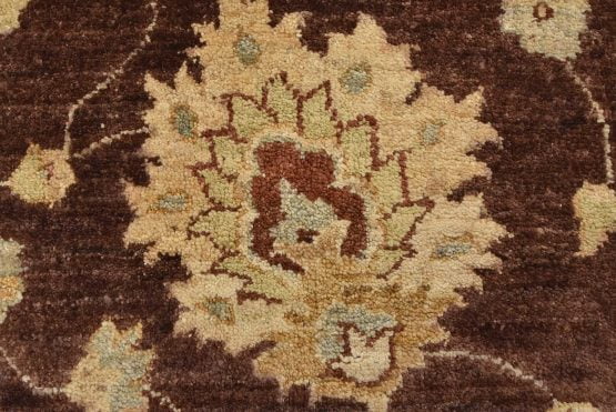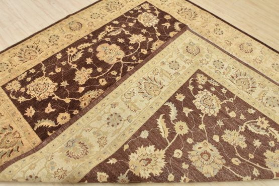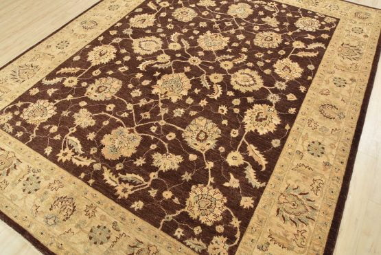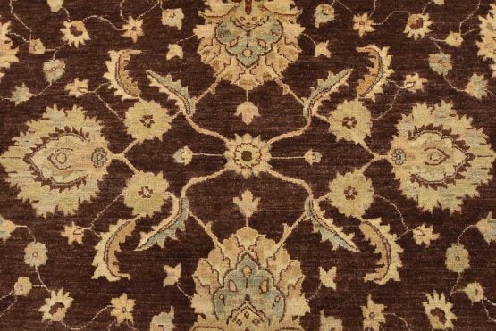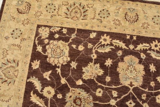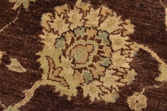 A traditional Ziegler rug hand-knotted with an all-wool pile on a cotton foundation. This oriental rug features an all-over floral design set against a brown background. It is new and in excellent condition.