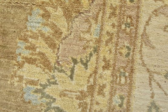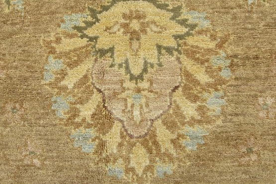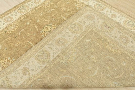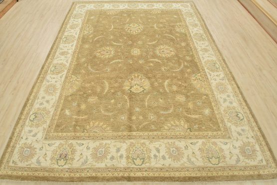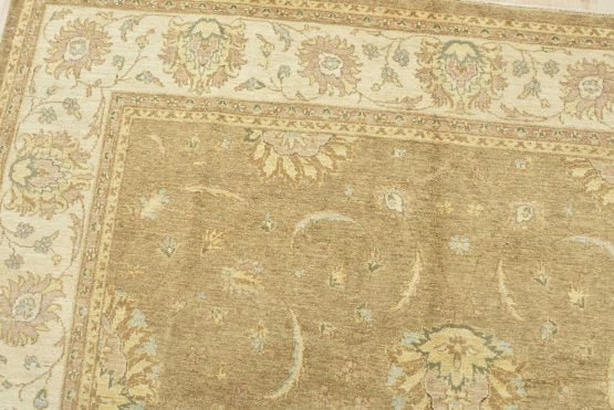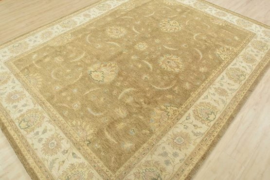 A modern traditional Ziegler rug hand-knotted with an all-wool pile on a cotton foundation. This oriental rug features a subtle all-over floral design set against a brown background. It is new and in excellent condition.