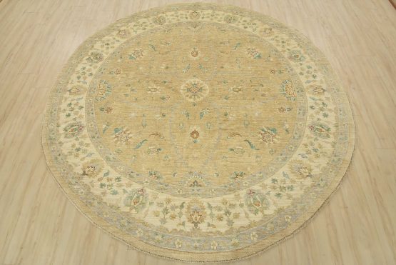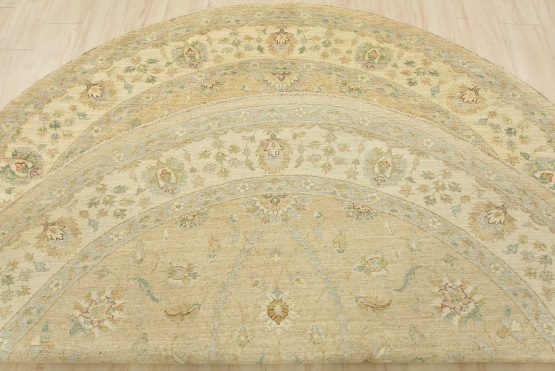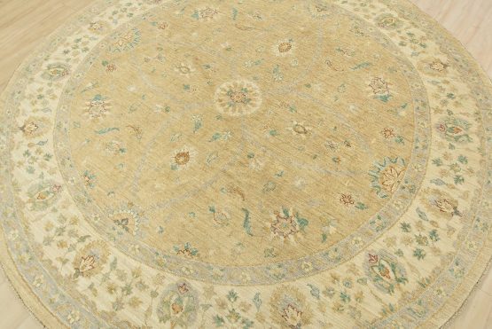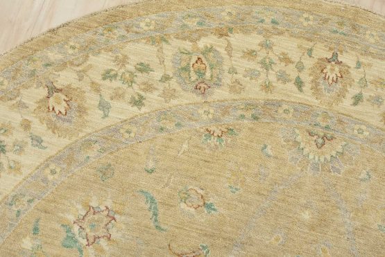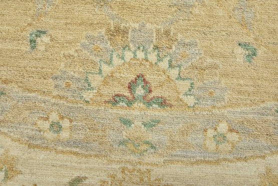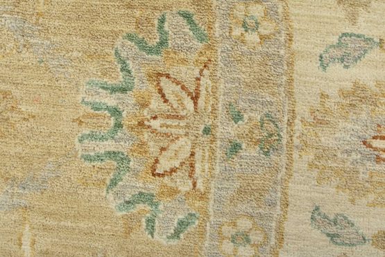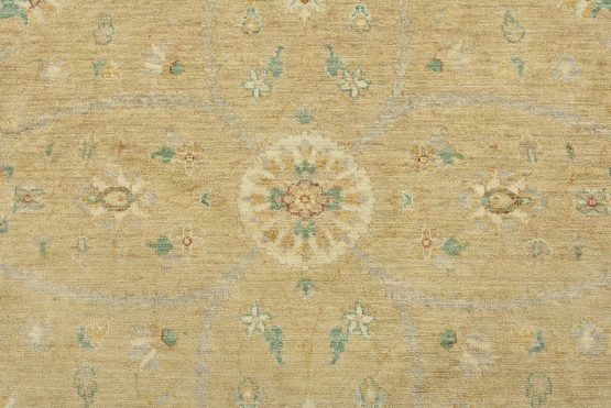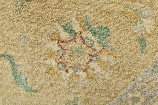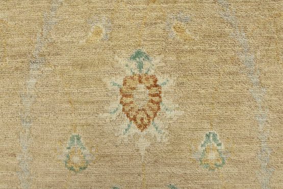 A traditional Ziegler rug hand-knotted with an all-wool pile on a cotton foundation. This oriental rug features muted colors with an all-over floral and botanical design set against a beige background. It is new and in excellent condition.