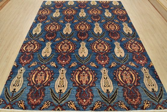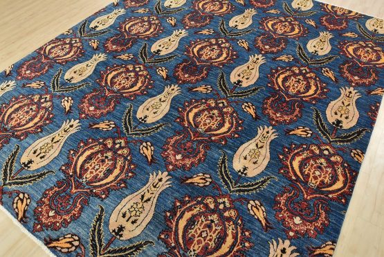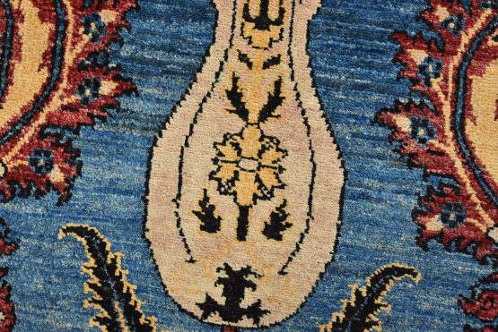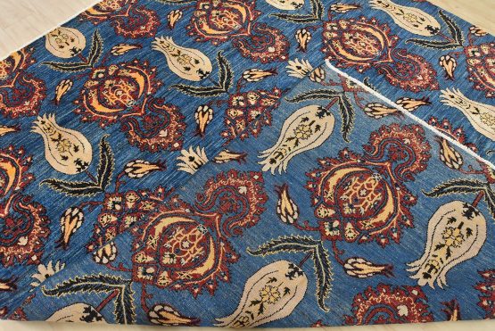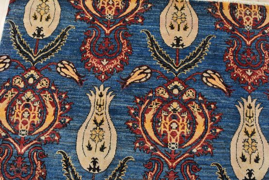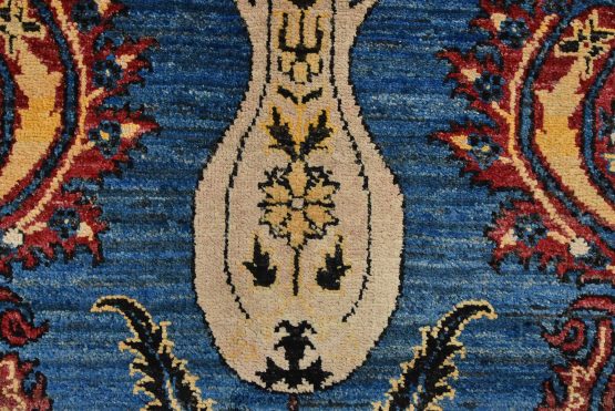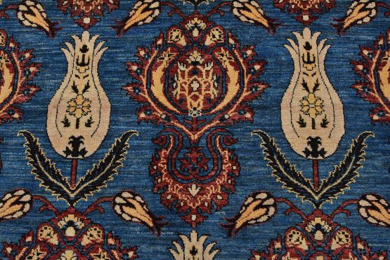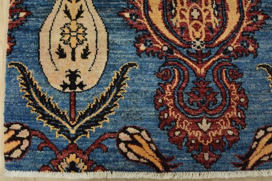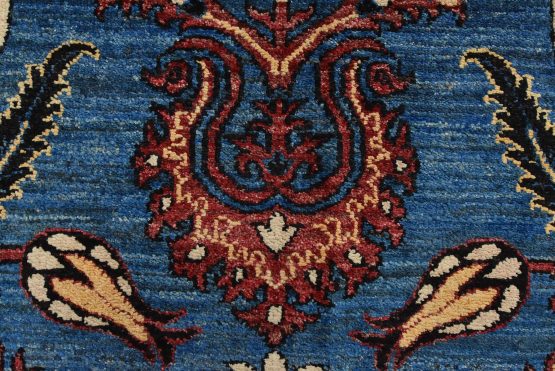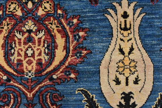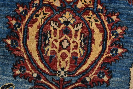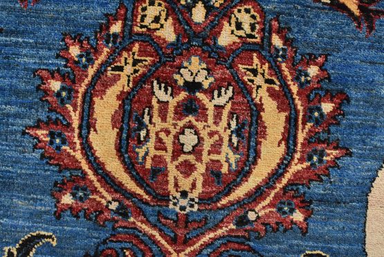 A traditional Ziegler rug hand-knotted with an all-wool pile on a cotton foundation. This finely woven oriental rug features a design of botanical motifs set against a blue background. It is new and in excellent condition.